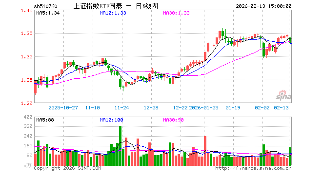 2月13日,上证指数ETF国泰(510760)跌1.26%,成交额1.97亿元。当日份额增加6000.00万份,最新份额为15.72亿份,近20个交易日份额增加1.59亿份。最新资产净值计算值为20.86亿元。
