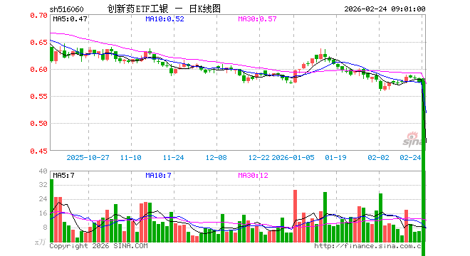 创新药ETF工银(516060)业绩比较基准为中证创新药产业指数收益率,管理人为工银瑞信基金管理有限公司,基金经理为史宝珖,成立(2021-02-09)以来回报为-42.63%,近一个月回报为-8.43%。