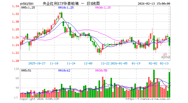 2月13日,央企红利ETF华泰柏瑞(561580)跌1.75%,成交额1.32亿元。当日份额增加8300.00万份,最新份额为10.41亿份,近20个交易日份额增加1.52亿份。最新资产净值计算值为12.87亿元。