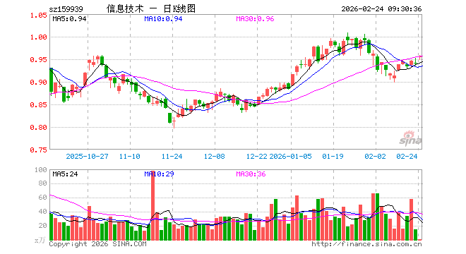 2月24日,信息技术ETF(159939)开盘涨1.27%,报0.954元。信息技术ETF(159939)重仓股方面,立讯精密开盘涨1.20%,寒武纪涨1.39%,工业富联涨1.21%,中芯国际涨0.94%,海光信息涨3.00%,北方华创涨1.17%,胜宏科技涨1.59%,京东方A涨0.96%,兆易创新涨2.85%,澜起科技涨3.27%。