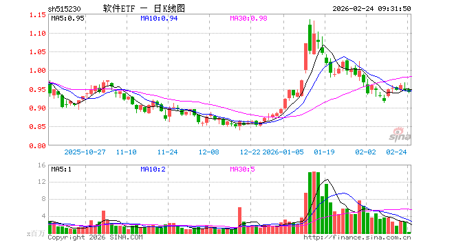 软件ETF(515230)业绩比较基准为中证全指软件指数收益率,管理人为国泰基金管理有限公司,基金经理为苗梦羽,成立(2021-02-03)以来回报为-5.48%,近一个月回报为-9.97%。