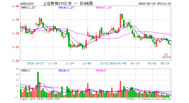2月24日,上证券商ETF汇安(510200)开盘跌0.24%,报1.258元。上证券商ETF汇安(510200)重仓股方面,国泰海通开盘涨0.25%,中信证券涨0.51%,华泰证券涨0.50%,招商证券涨0.71%,东方证券涨0.79%,兴业证券涨0.58%,中金公司涨0.35%,东吴证券涨0.64%,中信建投跌0.08%,中国银河涨0.74%。
