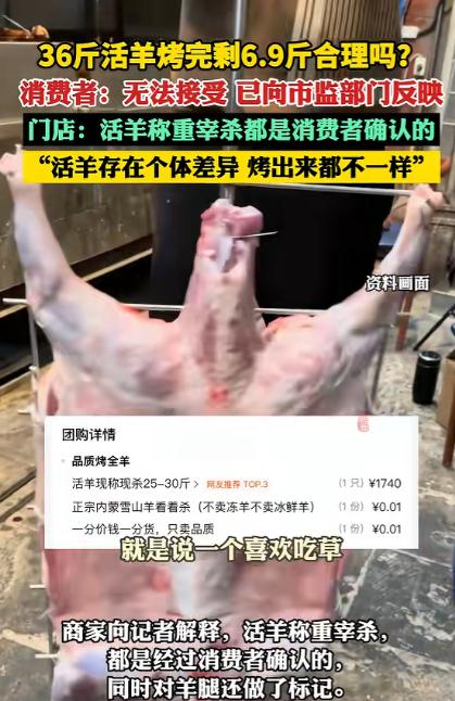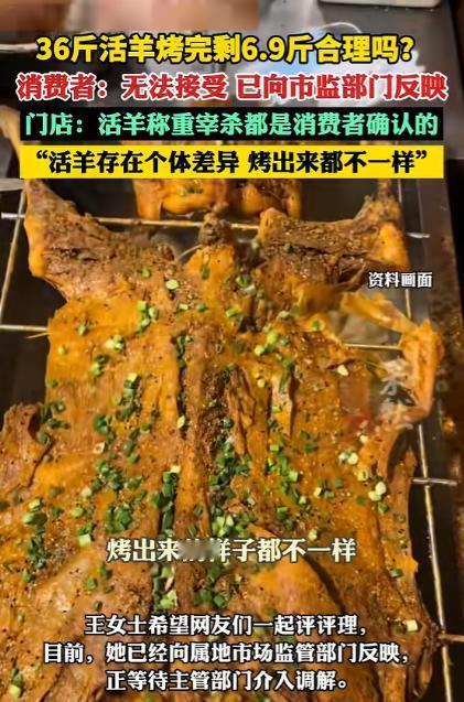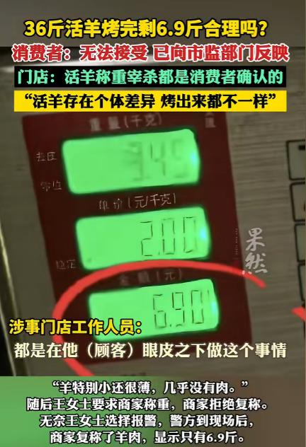 重庆一女子,除夕夜带着家人去到一家店铺吃烤全羊,来到店铺后女子就点了一个1188块的套餐,并选了一只36斤的羊来烤。可烤好后的羊肉端上桌时,女子当时就觉得不对劲了,因为这看起来36斤肥肥的羊,怎么烤出来却小了不少,还干瘪干瘪的,后双方起争执后,女子报了警,民警现场一称才发现,这烤出的羊竟然只有6.9斤了。 大年夜的重庆,本该是家家户户围坐一团、吃香喝辣的好日子,结果有位重庆大姐,带着一家老小出去吃烤全羊,愣是把年夜饭吃成了一肚子气,到最后还闹到了报警的地步,这事说出来都让人觉得匪夷所思。 当天,女子就早早的约上家里老小,直奔一家口碑不错的烤全羊店,打算用一只皮脆肉嫩的烤全羊,把年味儿吃得更足。 一进店,热闹的年味还没感受多久,女士就直奔主题选餐,看着菜单上的套餐,她直接敲定了 1188 元的烤全羊套餐,这也是店里适合家庭聚餐的档位。 选羊环节是店里的规矩,活羊现点现称现杀,图的就是一个放心,女士在羊群里挑了半天,选中一只看着膘肥体壮、皮毛顺滑的活羊,工作人员当场过秤,指针稳稳停在 36 斤的位置。 为了避免后续出现差错,女士还特意在羊腿上做了简易标记,拍照留了记录,确认完重量和羊只,店家才开始进行后续的宰杀处理,等待烤制的间隙,一家人围坐在一起说笑,都盼着这只分量十足的羊快点上桌。 但当烤全羊上桌之后,却让女子一家非常的疑惑,眼前的烤羊个头小得离谱,整个羊身干瘪发皱,表皮烤得紧紧贴在骨头上,羊腿细得和寻常鸭腿差不了多少,用筷子轻轻一拨就能看出,羊肉薄得几乎没有厚度,翻来覆去都找不到几块厚实的肉。 和当初那只 36 斤、圆滚滚的活羊比起来,简直是天差地别,别说满足一大家子的胃口,就算是浅尝辄止,都显得格外寒酸。 这样的落差让女士心里瞬间堵得慌,她当即找店家沟通,想弄明白 36 斤的活羊,怎么烤好后会缩水到这个地步。 可双方的沟通并不顺畅,店家的说法没能打消她的疑虑,你一言我一语间,原本温馨的年夜饭氛围彻底被打破,好好的除夕夜,硬生生被这场争执搅得糟心不已。 女士越想越觉得无法接受,自己花了真金白银,还当面确认了羊只和重量,最终得到的成品却完全不符,任谁遇到这样的事,都难以释怀。 最终女子选择报警来维护自己的权益,民警很快赶到现场,为了还原真实情况,当场找来精准的秤具,将这盘烤好的全羊放上去称重,数字跳出来的瞬间,在场的人都愣住了。 这只经过宰杀、烤制的全羊,净重竟然只有 6.9 斤,从 36 斤的活羊到 6.9 斤的成品,近 30 斤的重量差,让这场原本普通的消费纠纷,瞬间变得疑点重重。 面对消费者的质疑和现场的称重结果,店家也给出了自己的解释。 店家表示,从活羊挑选、称重,到现场宰杀,每一个环节都经过消费者的当面确认,不存在更换羊只、缺斤短两的行为。 至于重量大幅缩减的问题,店家解释称,活羊本身存在个体差异,不同羊只的出肉量本就不同,活羊宰杀后要去除内脏、羊皮、羊头等不可食用部分,光是这一步,重量就会降到活羊的四成左右,再经过炭火长时间烤制,羊肉内部的水分会大量蒸发,重量还会进一步减少。 店家还补充道,羊的生长状态也会影响成品分量,经常跑动、喜欢运动的羊,和不爱活动的羊,肉质紧实度不一样,烤制后的缩水程度也会有明显区别,这些都是食材处理过程中的正常情况。 其实在餐饮行业里,烤全羊的重量损耗本就是消费者容易忽略的细节,活羊属于生鲜食材,从活体到成品,要经过宰杀、去杂、清洗、慢烤等多道工序,水分流失和废料去除,必然会带来重量缩减。 按照行业内的常规比例,36 斤的活羊宰杀去杂后,重量通常能保留 16 到 18 斤,再经过烤制脱水,成品重量一般会在 10 到 13 斤之间,这是多数正规烤全羊店的正常损耗范围。 而这次事件中 6.9 斤的成品重量,远低于行业常规标准,这也是消费者难以认可商家说法的核心原因。 目前,女士提交的投诉材料已经被市场监管部门受理,相关工作人员会针对店家的操作流程、食材处理记录、分量核算方式展开全面调查,核实重量损耗是否在合理区间,也会给消费者一个明确的答复。 对于那些烤全羊店家来说,诚信经营才是长久之道,不能想着靠 “玩猫腻”、“缺斤短两” 来赚黑心钱。 主动向消费者如实告知食材损耗情况、成品分量,规范操作流程,不搞虚假宣传、不缺斤短两,才能赢得消费者的信任,生意才能做得长久。 要是只顾着眼前的一点小利益,糊弄消费者,最终只会被市场淘汰,还得承担相应的法律责任,得不偿失。 对于这件事,您有什么想说的吗?欢迎评论区留言讨论。 信源:齐鲁晚报·果然视频2026-02-23——《36斤活羊烤完剩6.9斤合理吗》