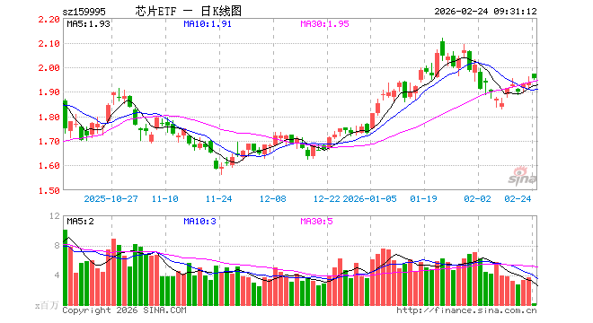 2月24日,芯片ETF(159995)开盘涨1.86%,报1.972元。芯片ETF(159995)重仓股方面,中芯国际开盘涨0.94%,海光信息涨3.00%,寒武纪涨1.39%,北方华创涨1.17%,兆易创新涨2.85%,中微公司涨1.26%,澜起科技涨3.27%,豪威集团涨1.02%,拓荆科技涨0.92%,长电科技涨1.67%。