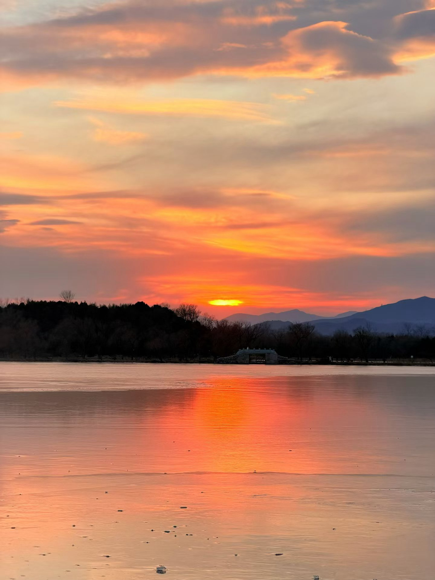 马年春节,颐和园的日落美到失语。夕阳沉落西山,将昆明湖铺成鎏金镜面,十七孔桥金光穿洞,红墙飞檐裹着暖橙霞光,年味与诗意撞个满怀。