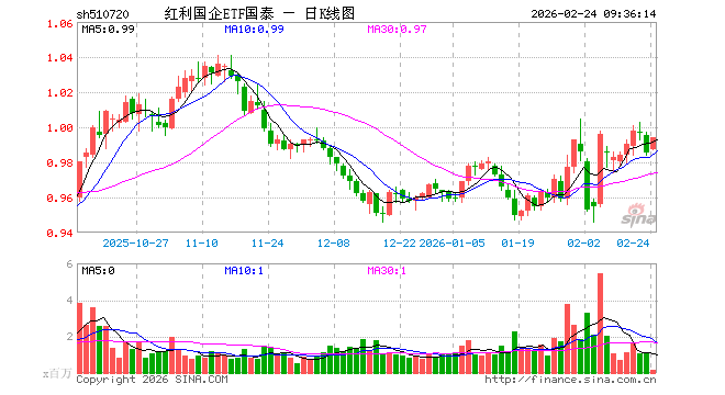 2月24日,红利国企ETF国泰(510720)开盘涨0.20%,报0.987元。红利国企ETF国泰(510720)重仓股方面,中远海控开盘涨1.68%,山煤国际涨0.81%,平煤股份涨0.11%,潞安环能涨0.36%,恒源煤电涨1.55%,陕西煤业涨1.14%,西部矿业涨2.48%,兖矿能源涨2.02%,四川路桥涨0.21%,厦门国贸涨0.46%。