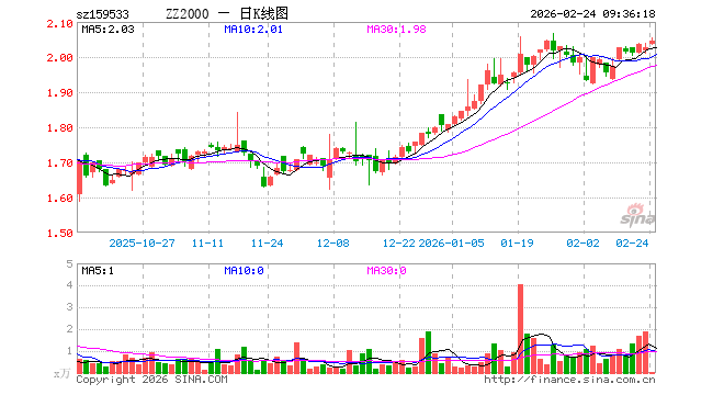 2月24日,中证2000ETF博时(159533)开盘涨0.49%,报2.036元。中证2000ETF博时(159533)重仓股方面,鸿富瀚开盘涨0.86%,亚太股份涨3.11%,新黄浦涨0.00%,中原内配涨2.30%,海伦哲涨1.74%,龙磁科技涨1.79%,慧智微涨1.05%,华源控股涨2.02%,丽尚国潮涨0.19%,永创智能涨1.37%。