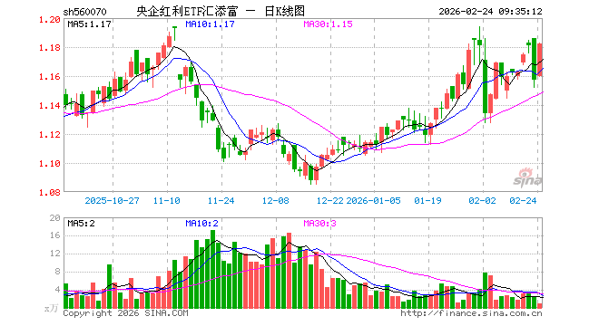 2月24日,央企红利ETF汇添富(560070)开盘涨0.26%,报1.160元。央企红利ETF汇添富(560070)重仓股方面,中远海控开盘涨1.68%,中国神华涨0.68%,中粮糖业涨0.96%,中国石油涨3.42%,中国石化涨1.57%,中国海油涨4.10%,中国外运涨0.34%,招商银行涨1.27%,宝钢股份涨1.01%,四川美丰涨1.03%。