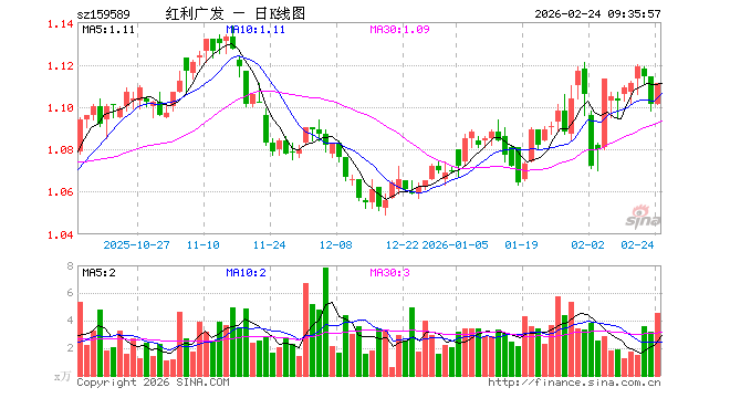 2月24日,红利ETF广发(159589)开盘涨0.00%,报1.101元。红利ETF广发(159589)重仓股方面,中远海控开盘涨1.68%,广汇能源涨2.22%,中谷物流涨1.25%,山煤国际涨0.81%,平煤股份涨0.11%,潞安环能涨0.36%,鄂尔多斯跌0.06%,山西焦煤涨0.57%,陕西煤业涨1.14%,藏格矿业涨2.13%。