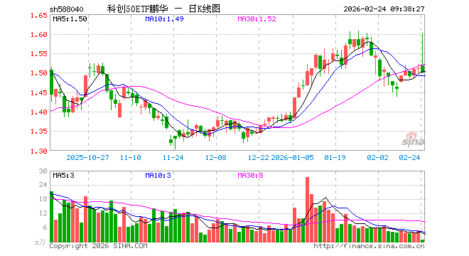 2月24日,科创50ETF鹏华(588040)开盘涨0.46%,报1.517元。科创50ETF鹏华(588040)重仓股方面,中芯国际开盘涨0.94%,寒武纪涨1.39%,海光信息涨3.00%,澜起科技涨3.27%,中微公司涨1.26%,金山办公涨0.23%,联影医疗涨0.93%,拓荆科技涨0.92%,芯原股份涨3.45%,沪硅产业涨1.12%。