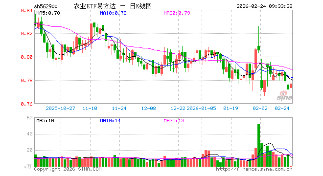 农业ETF易方达(562900)业绩比较基准为中证现代农业主题指数收益率,管理人为易方达基金管理有限公司,基金经理为聂启文,成立(2021-12-02)以来回报为-22.74%,近一个月回报为-2.46%。