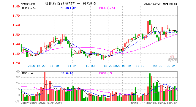 2月24日,科创板新能源ETF(588960)开盘涨0.20%,报1.525元。科创板新能源ETF(588960)重仓股方面,晶科能源开盘涨1.45%,阿特斯涨1.75%,天合光能跌0.05%,容百科技涨1.76%,大全能源涨0.72%,厦钨新能涨1.09%,嘉元科技涨0.28%,天奈科技涨1.59%,孚能科技涨0.07%,固德威涨1.49%。