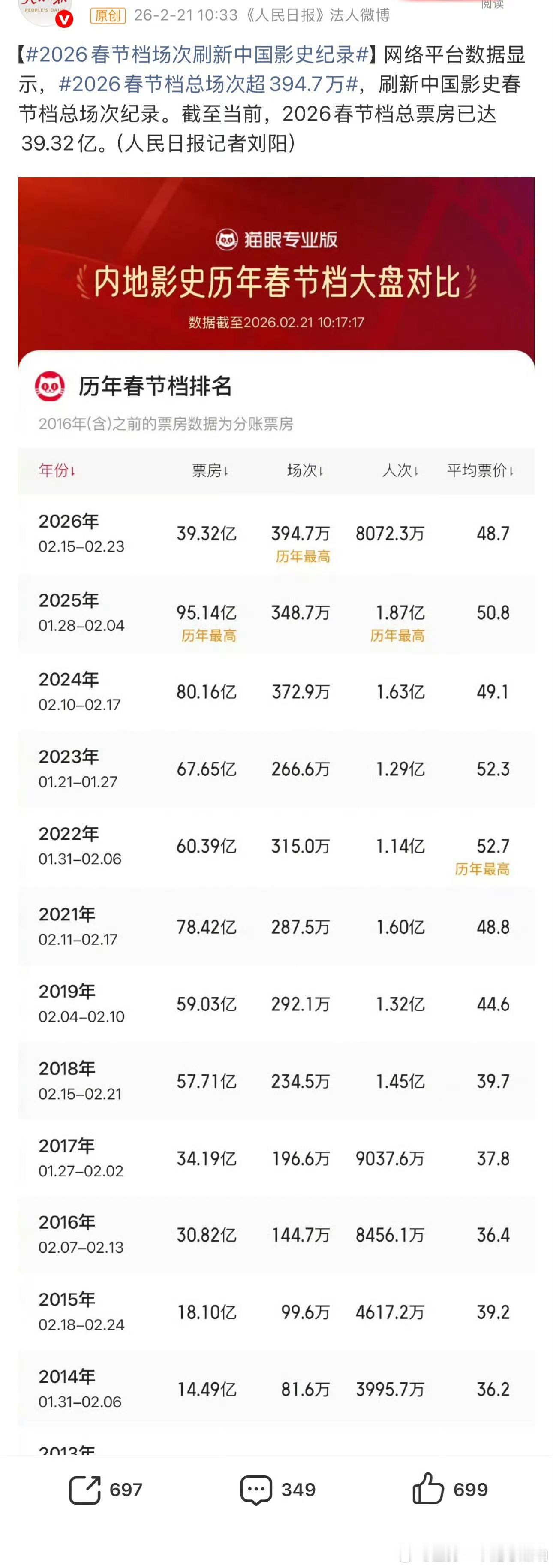 今年春节档票房这么乏力,一夜回到2018年,还是在总场次还刷新了纪录情况下