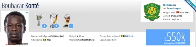 直播吧2月24日讯根据德转中国区管理员朱艺消息,马里中场孔特加盟北京国安。