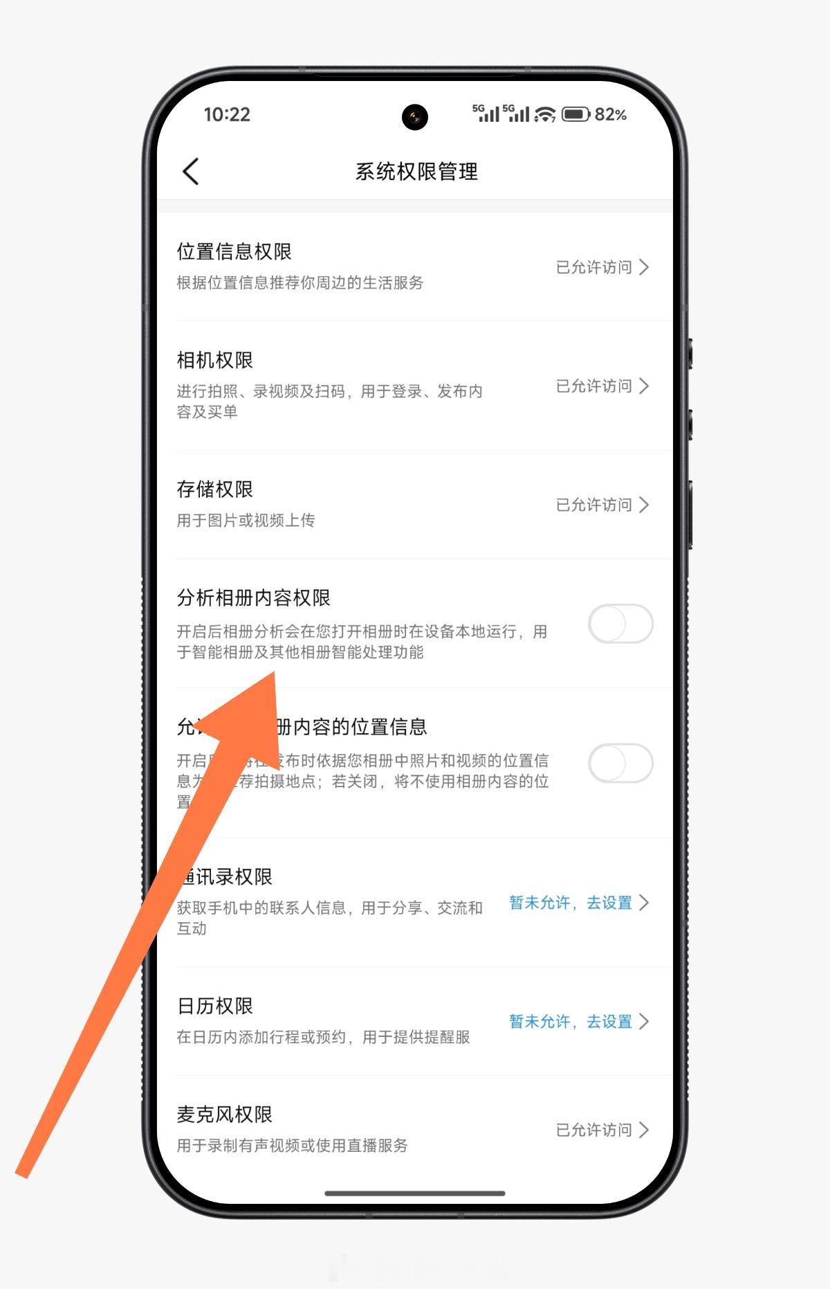 * 路径是设置-系统权限-相册/存储权限,这玩意还是默认开启的(图二)。