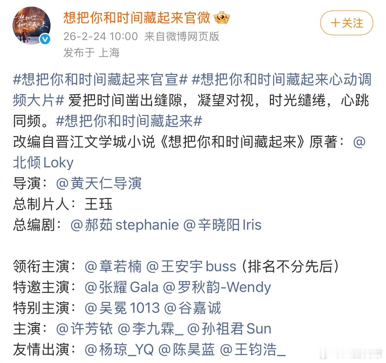 想把你和时间藏起来官宣