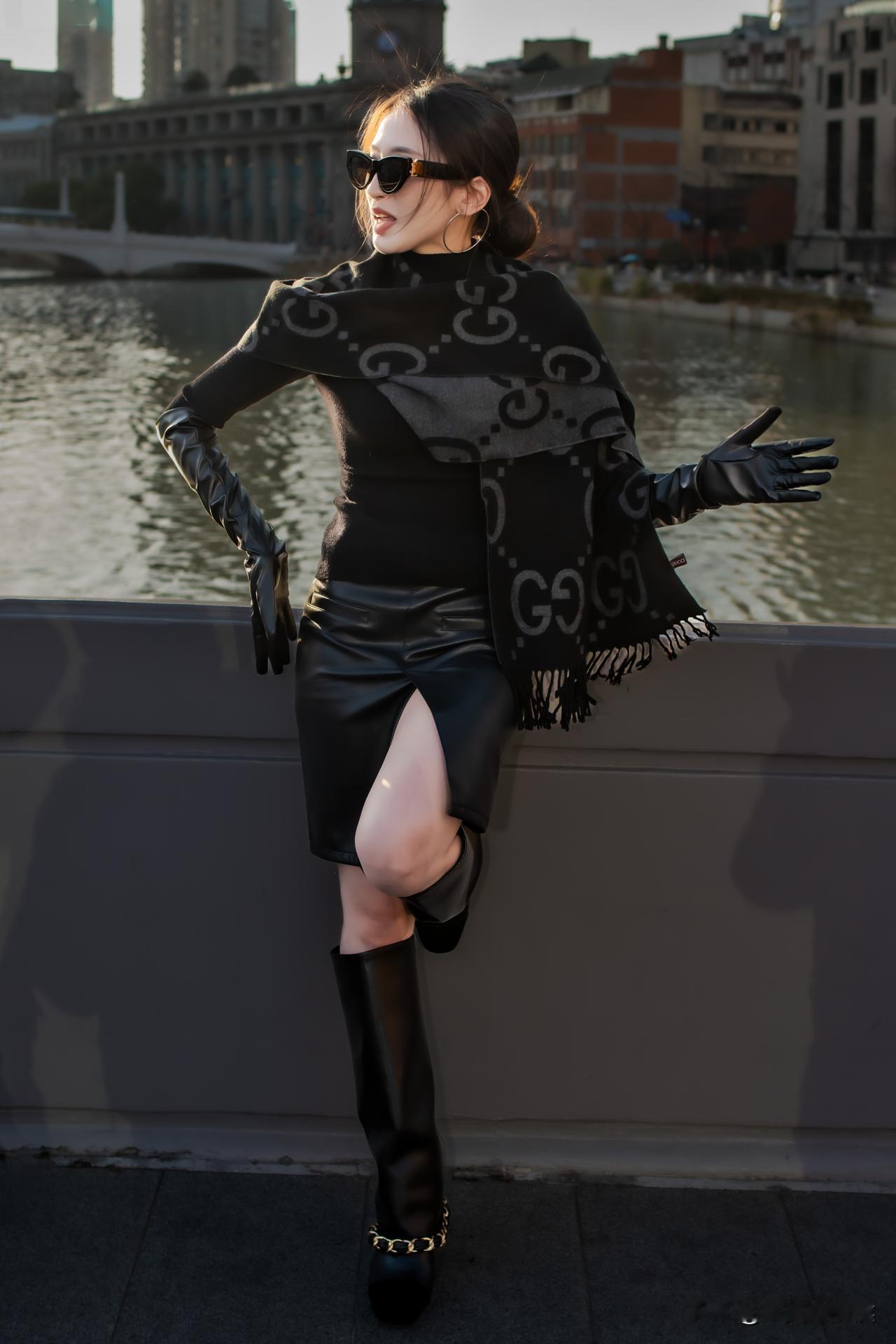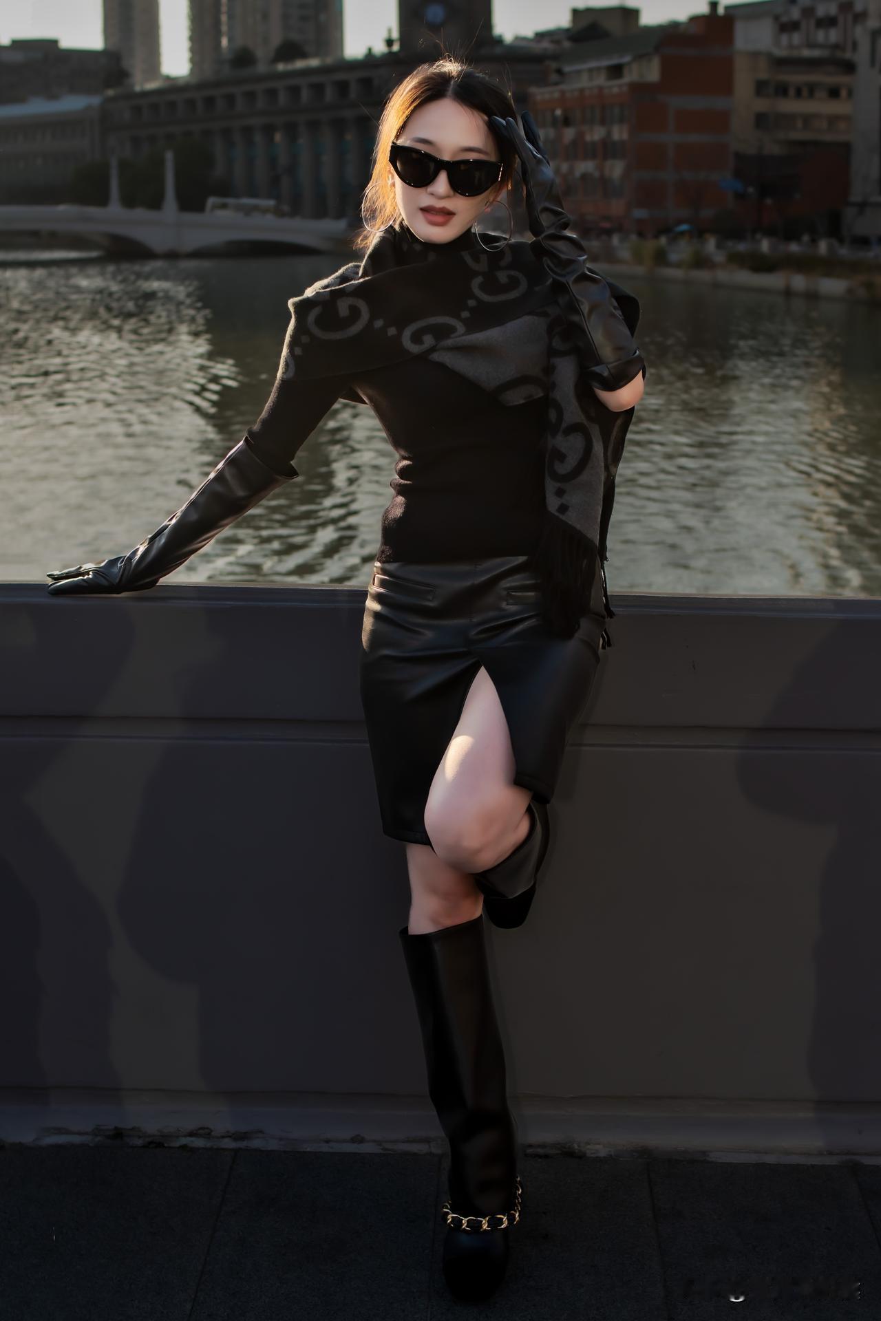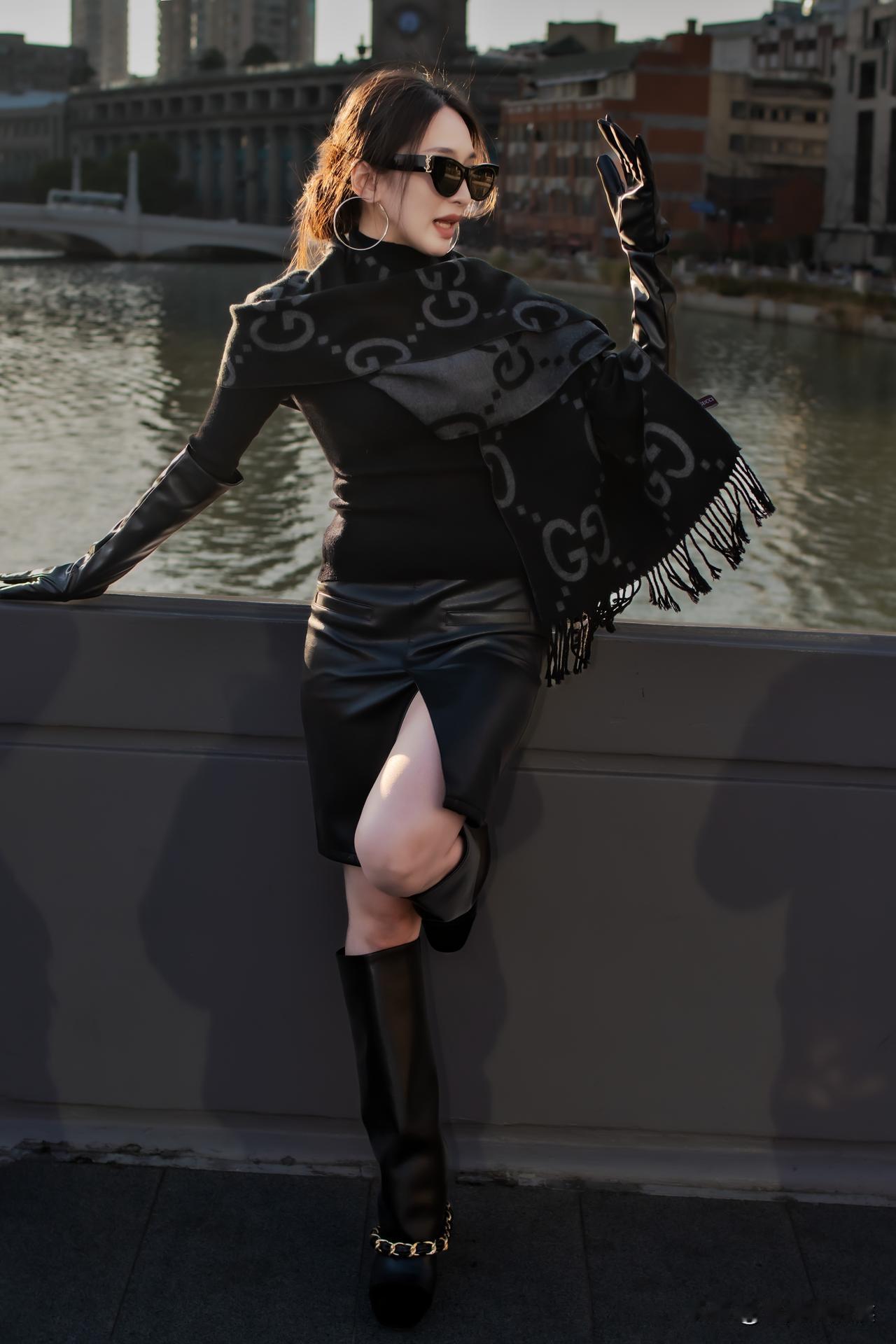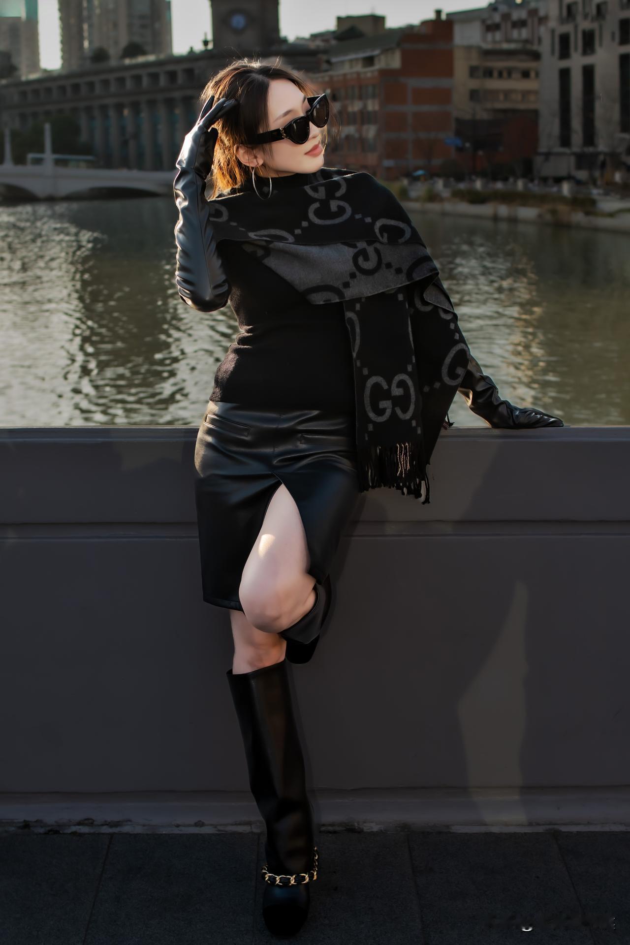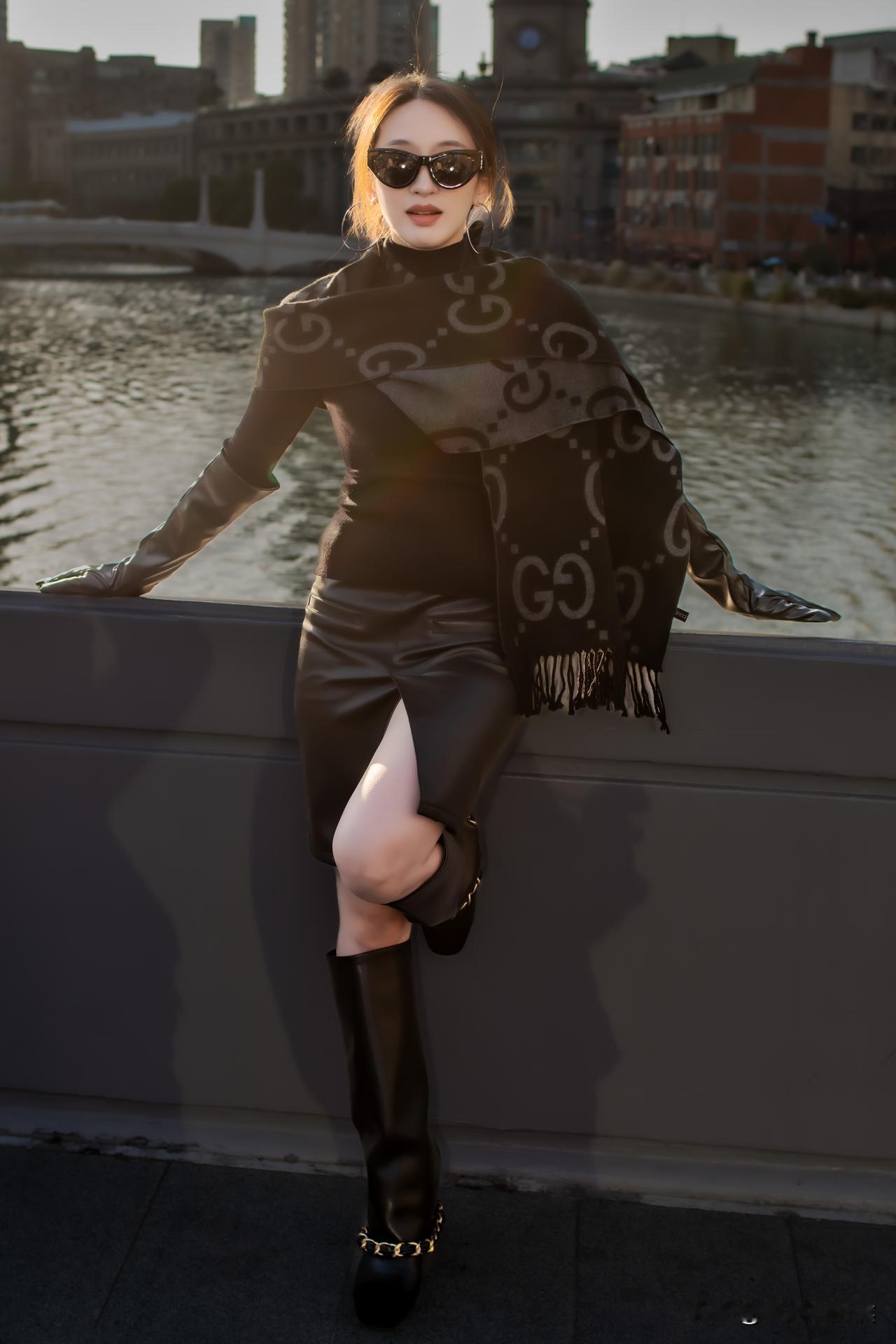 夜晚街拍,牛仔外套+皮裙,时尚又帅气