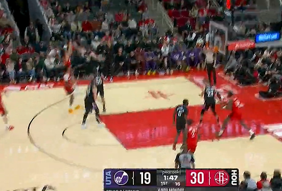 谢泼德三分也2中2,全队三分11中7&火箭已领先爵士16分