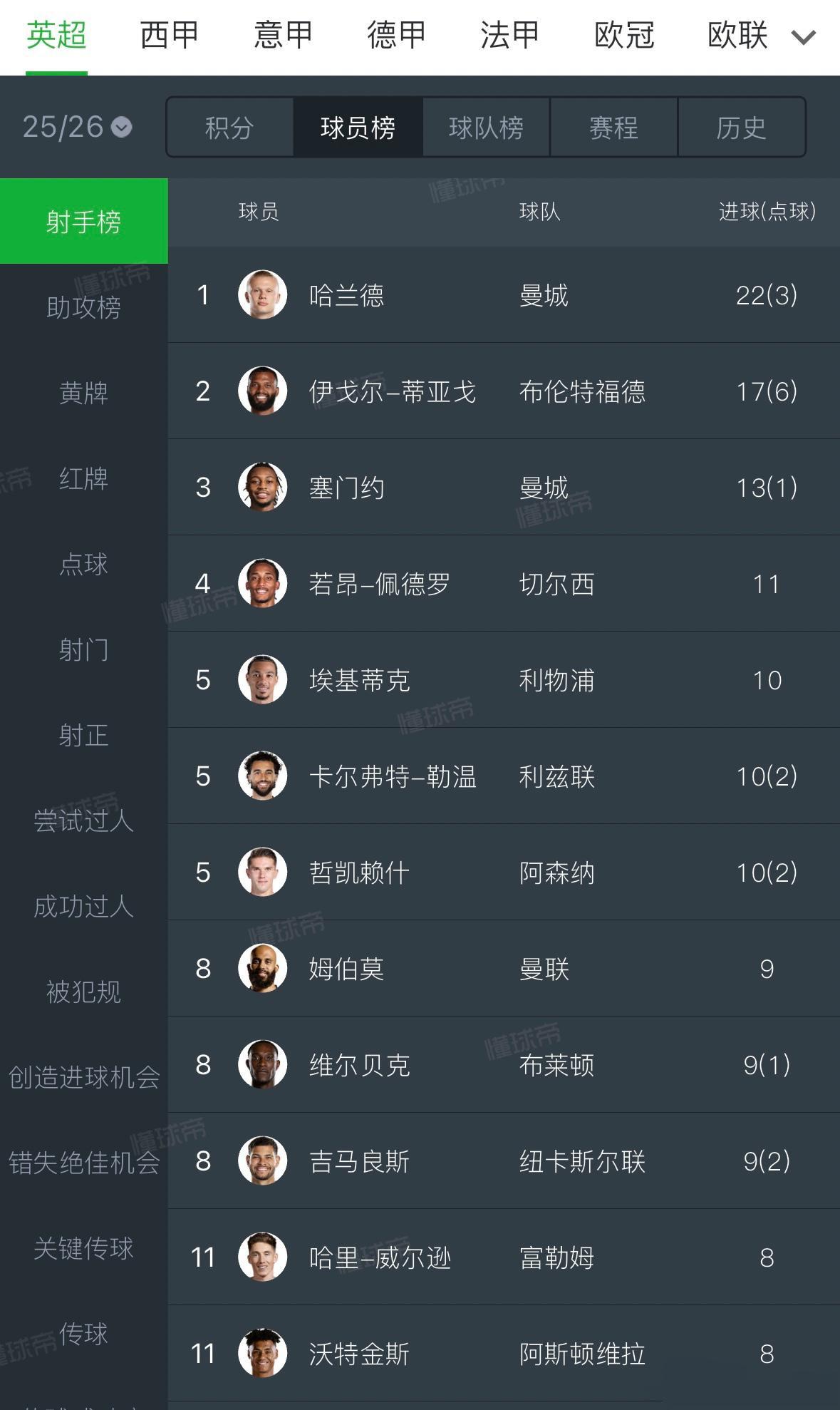 英超射手王基本是哈兰德啦。 第二名距离他太遥远。 赛门约都成为队友,辅助他拿金靴。 其他人下赛季再说吧。[震惊]