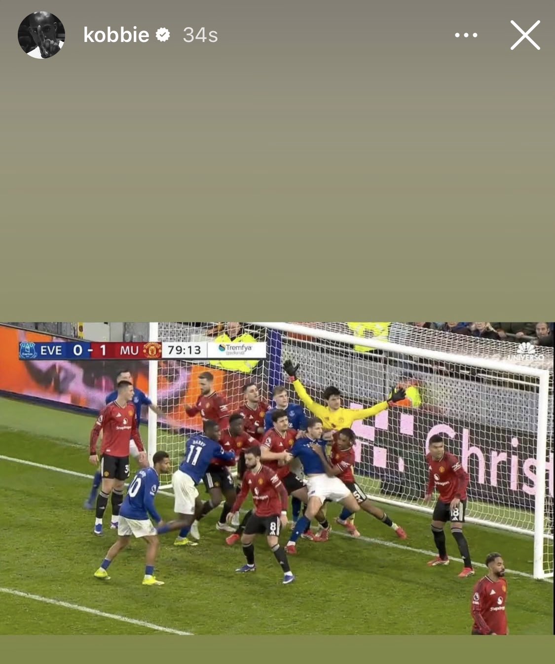 在比赛最后10分钟埃弗顿开角球时引发争议,多名球员对曼联门将拉门斯进行挤压,但角球攻势最终被化解。