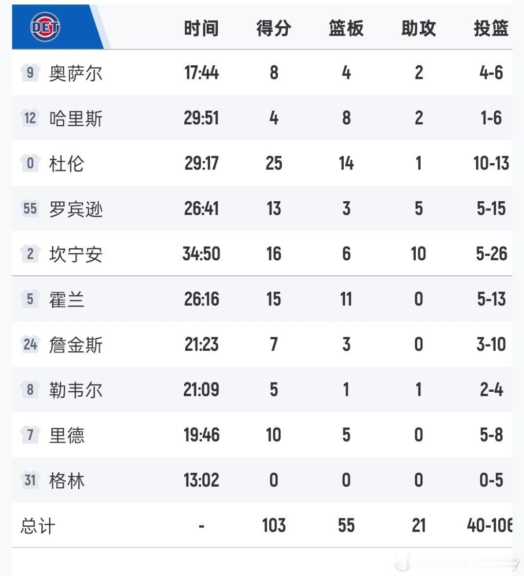 瓦塞尔14投10中28分,文班亚马21分17板6盖帽,卡斯尔16分10助攻杜伦25分14篮板,坎宁安16分10助攻,霍兰15分11篮板