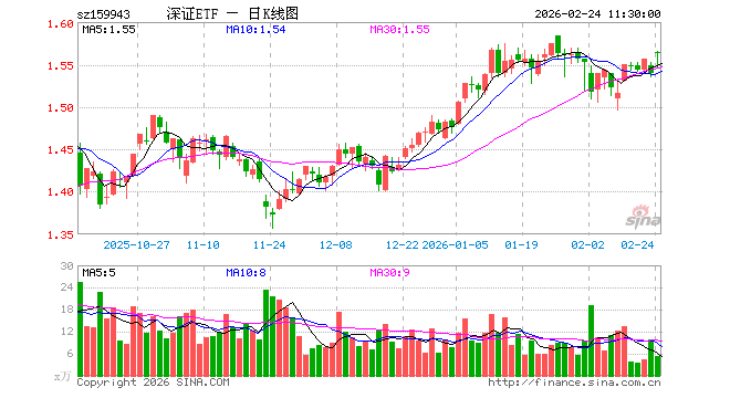 2月24日,截止午间收盘,深证成指ETF大成(159943)涨1.56%,报1.564元,成交额839.71万元。深证成指ETF大成(159943)重仓股方面,宁德时代截止午盘跌0.48%,中际旭创涨6.27%,新易盛涨3.68%,美的集团涨1.06%,东方财富涨0.27%,立讯精密涨0.89%,阳光电源涨1.57%,比亚迪涨0.49%,五粮液跌0.53%,北方华创涨0.78%。