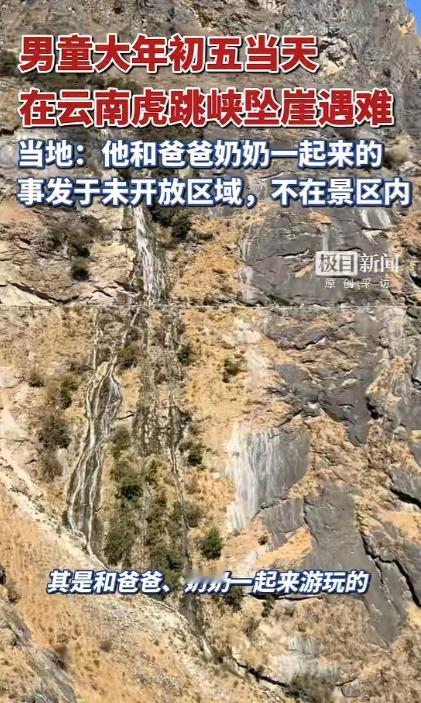 虎跳峡坠崖男童摔下去以后,他的奶奶紧接着就下去查看情况了。可由于缺乏常识,她竟用了很大力气将已经瘫软的孩子抱了起来…… 大年初五的滇西北,阳光把虎跳峡的山壁晒得暖融融的,不少家庭趁着春节的尾巴来这里感受自然的壮阔。 谁也没料到,一场本该温馨的亲子徒步,会在一片被封闭的未开发野路上,变成让人久久无法释怀的悲剧。 当天的虎跳峡山谷里风势不小,连站在平整路面上的成年人,都能感觉到一丝不稳。有一家三口沿着山间的小路往前走。 领头的是孩子的爸爸,身边跟着年迈的奶奶,中间牵着年纪尚小的男童,他们没有走景区里铺好石板、装着坚固护栏的正规步道,而是拐进了一条早就被官方封闭的野路。 这条路是当地村民偶尔放牧踩出来的,最宽的地方也不过一米出头,一侧是光秃秃的陡峭山壁,另一侧就是深达二十多米的峡谷,脚下全是松动的碎石和湿滑的泥土,连一道简单的防护栏都没有。 沿途早就立起了醒目的警示标牌,还有工作人员定期巡查劝返,明明白白告诉着来往的人,这里不适合游客进入,可他们还是抱着侥幸心理走了进去。 孩子年纪小,好奇心重,走着走着就挣脱了大人的手,山谷里的风突然变大,孩子脚下一滑,整个人失去了平衡,朝着峡谷外侧倒了下去。 没有任何缓冲,孩子的身体顺着陡峭的山壁快速滚落,一路上撞在凸起的岩石上,最后重重摔在谷底的乱石堆里,瞬间没了动静。 二十多米的垂直落差,相当于六七层楼的高度,对于一个年幼的孩子来说,这样的坠落足以造成致命的伤害。 孩子坠下去的那一刻,奶奶的心脏像是被狠狠揪了一下,她顾不上山路陡峭、碎石打滑,几乎是连滚带爬地往崖下冲,只想第一时间冲到孙子身边,看看孩子到底怎么样了。 等她好不容易挪到崖底,看到孩子瘫软在地上,小脸上全是鲜血,头部的伤口还在往外渗血,整个人瞬间慌了神。 她完全不懂高处坠落之后的急救常识,心里只想着把孩子抱起来,用了很大的力气,就将已经失去意识的孩子紧紧抱在了怀里。 她不知道,高处坠落尤其是头部受伤后,随意搬动会加重颅内损伤,让原本还有救治希望的身体,承受更严重的二次伤害。 不远处的其他徒步游客看到这一幕,全都惊呆了,有人赶紧拿出手机拨打救援电话,有人想上前提醒不能随意搬动孩子,可一切都已经来不及。 孩子的爸爸也很快冲到了崖底,看到孩子浑身是血、毫无反应的样子,先是惊讶地往后退了一步,眼神里满是不敢置信,他愣在原地,看着孩子头上不断渗出的血迹,整个人都僵住了,随后就扑到孩子身边,和奶奶一起抱着孩子失声痛哭。 现场的目击者说,当时孩子头部的伤口特别明显,整个人软趴趴的没有一点力气,被抱起来的时候也没有任何回应。 大家都在心里默默祈祷,希望救援人员能快点赶到,希望这个孩子能平安度过难关。 有人无奈地说,这片野路因为之前发生过山体滑坡,早就被彻底封闭,网上也有不少提醒,说这里危险不能去,可总有人觉得危险离自己很远,非要擅自闯入。 救援人员接到电话后,以最快的速度赶往现场,可山路崎岖难行,加上崖底地形复杂,给救援工作带来了不小的难度。 医护人员带着急救设备,沿着陡峭的坡面一点点往下挪,等终于赶到孩子身边时,经过仔细检查,发现孩子因为头部严重损伤,已经失去了生命体征。 在场的游客看着救援人员忙碌的身影,心里都沉甸甸的,谁也不愿意接受这个残酷的结果,刚刚还鲜活的小生命,就这样永远停在了这片山谷里。 那些亲眼目睹了事发过程的游客,回到住处后心里一直难以平静,直到第二天刷到当地的新闻报道,才正式确认了这个让人痛心的消息。 从二十多米山崖滚落的男童,最终没能抢救回来,永远离开了这个世界,新闻里明确提到,孩子是和爸爸、奶奶一起来到虎跳峡的。 事发地点完全处于未开放区域,根本不在景区的正常游览范围之内,景区也从未对这段野路进行过开发和管理,所有的风险都需要闯入者自己承担。 生活里很多人都缺乏基础的急救常识,遇到紧急情况时,本能的举动反而会带来更糟的结果,高处坠落的伤者不能随意搬动、头部受伤不能摇晃,这些简单的知识,在关键时刻或许就能留住一条生命。 春节期间,带着孩子出门亲近自然、放松心情的家庭越来越多,大家都想趁着假期留下美好的回忆。 可很多人都忘了,自然风景的美好背后,藏着不少看不见的风险。未开放的山区、没有防护的崖边、未经开发的野路,这些地方从来都不是休闲游玩的好去处,再美的风景,也比不上家人的安全重要。 孩子的世界里充满好奇,他们不知道哪里有危险,这就需要身边的大人时刻绷紧安全的弦,守住安全的底线。 对于这件事,您有什么想说的吗?欢迎评论区留言讨论。 信源:极目新闻2026-02-23——《大年初五男童虎跳峡坠崖不幸遇难,当地:是和爸爸奶奶一起来的,事发于未开放区域,不在景区内》