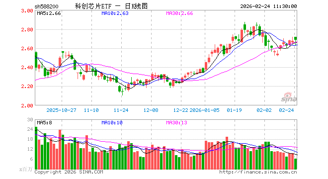 2月24日,截止午间收盘,科创芯片ETF(588200)涨0.34%,报2.683元,成交额16.87亿元。科创芯片ETF(588200)重仓股方面,中芯国际截止午盘跌0.30%,海光信息跌3.23%,寒武纪跌3.27%,澜起科技涨6.73%,中微公司涨0.38%,拓荆科技跌0.10%,芯原股份跌4.86%,华虹公司跌3.73%,沪硅产业涨1.85%,东芯股份跌0.64%。