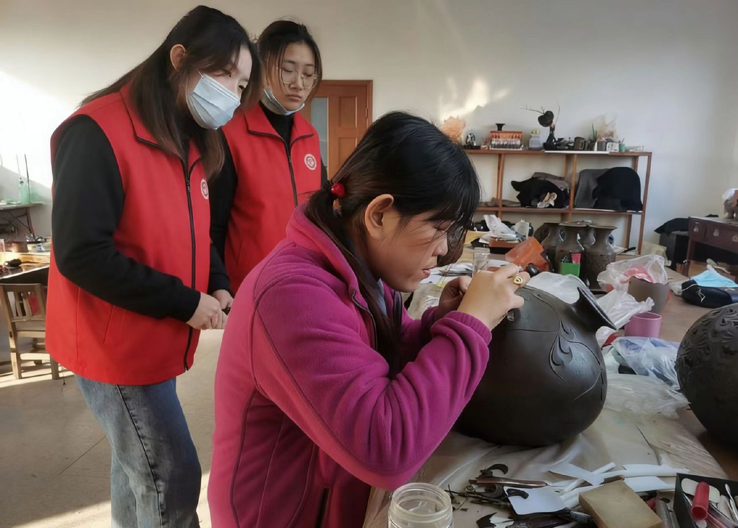 【黑釉藏黄河韵 陶坯承龙山魂】曲阜师范大学 大学生寒假社会实践 三下乡 2月21日至22日,曲阜师范大学网络空间安全学院青禾拾遗实践队赴德州,开展黑陶非遗探寻实践活动。德州黑陶是龙山文化重要遗存,以“薄如纸、亮如漆、硬如瓷、声如磬”著称,2006年入选山东省非物质文化遗产名录。实践队首站走进德州市博物馆。在龙山黑陶展厅,高约1.2米的蛋壳黑陶杯复制品薄如蝉翼,最薄处仅0.2毫米,是德州黑陶技艺的标准范本。展厅内,古老制陶工具陈列有序,多媒体设备完整展示从黄河淤泥筛选、拉坯雕刻到封窑渗碳的全流程,队员们认真记录,深入了解非遗技艺精髓。随后,队员们来到梁子黑陶工作室,拜访63岁非遗传承人梁新顺。梁师傅深耕黑陶技艺多年,荣获省级非遗保护先进个人。队员们近距离观摩制陶过程,在指导下亲手体验拉坯,感受传统技艺的力道与技巧。工作室中,精美的黑陶作品与家族传承老照片,诉说着匠人对龙山文化的坚守。次日,实践队与梁新顺走进二屯镇中心小学,开展非遗体验课堂。队员们手把手教孩子们揉泥、雕刻,孩子们用陶泥创作童趣作品,在动手实践中感受黑陶魅力。此次实践,让队员们真切触摸到非遗文化的温度,深刻认识到黑陶承载的文化根脉与匠人精神。大家纷纷表示,将以实际行动传承非遗文化,担当起青年保护传统文化的责任。