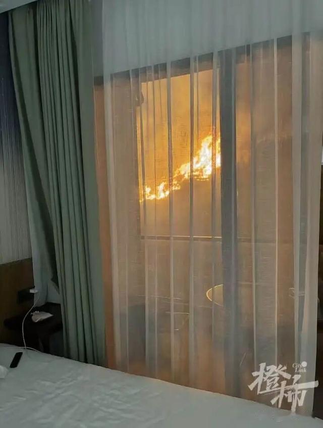 一名靠近现场的游客发文,自己在民宿的房间里,就能感受窗户外的火势。