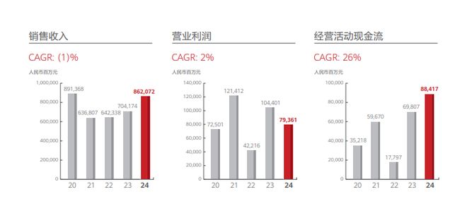 财闻初步统计,华为2024年实现全球销售收入约8621亿元人民币,2023年约7042亿元人民币,2022年约6423亿元人民币,2021年约为6368亿元人民币,2020年约为8914亿元人民币,为历史最高的一年。依次为基准,2025年为历史第二高。