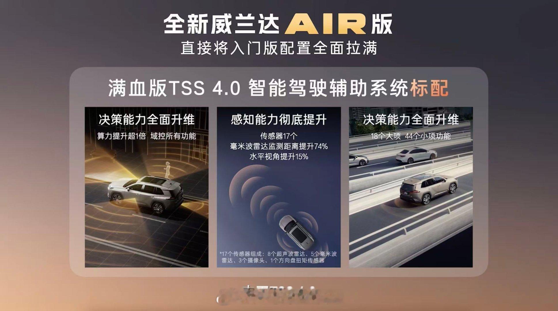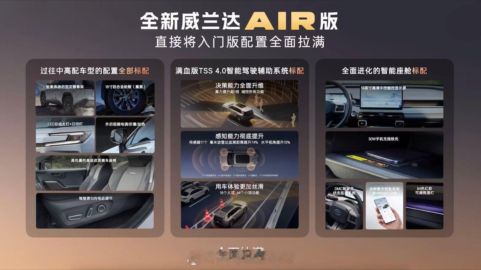 首先还是技术和可靠,当用户回归理性,他们更看重技术成熟度与真实体验。威兰达混动版低至4.59L/百公里的油耗,配合一箱油上千公里的续航,直击家用痛点。而标配的大屏智能座舱与最新TSS 4.0智驾系统,则证明了传统大厂在智能化上同样不落人后,实现了“入门即中配”的科技普惠。