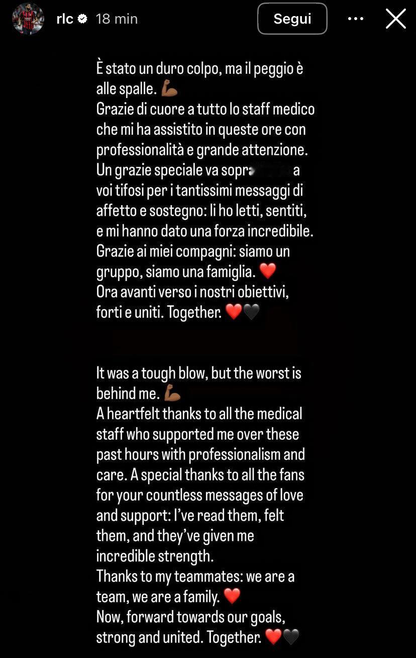 米兰官宣洛夫图斯奇克已经成功接受了手术,预计缺席两个月。他本人也在社交媒体上给大