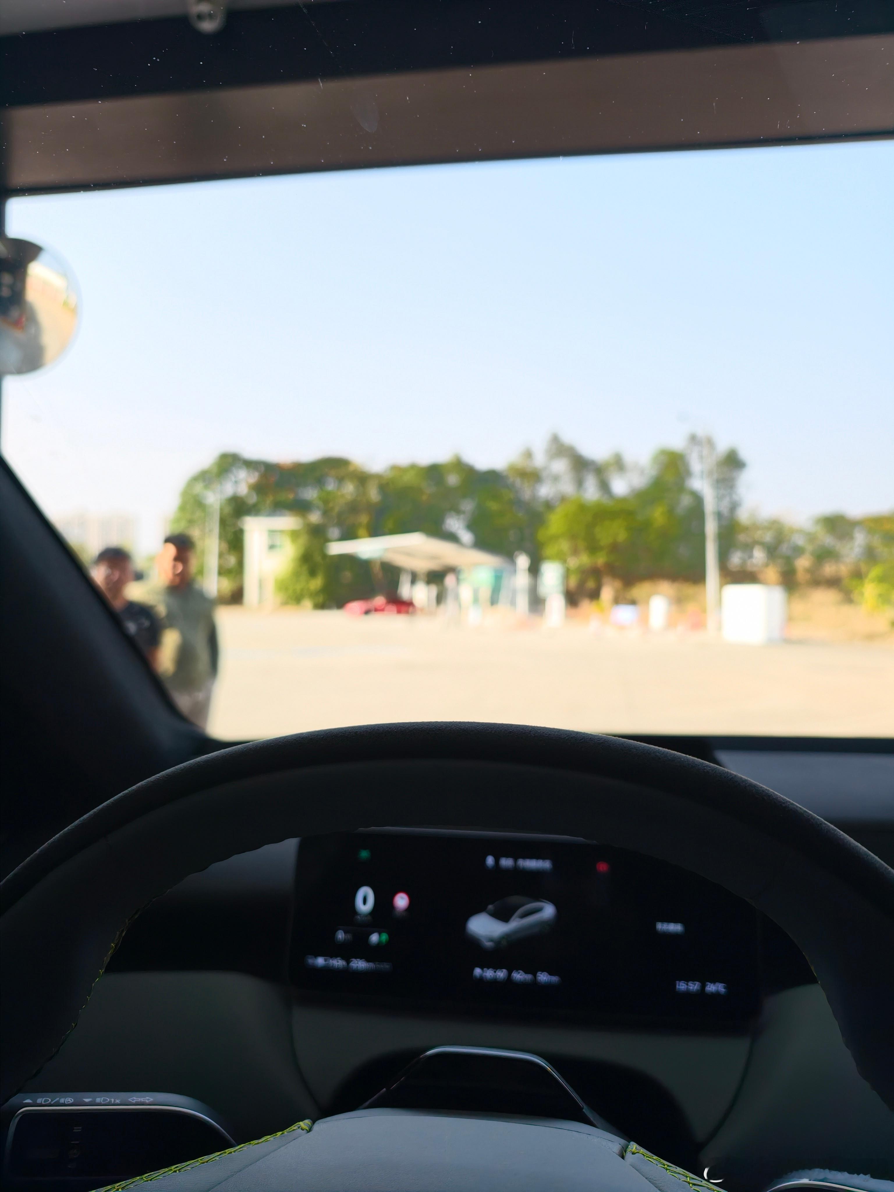 但因为广东地区没有试驾车了,问了一圈,试驾车都安排出去了,剩下萤火虫和一台蔚来 ET5 冠军版,果断选了 ET5 冠军版。