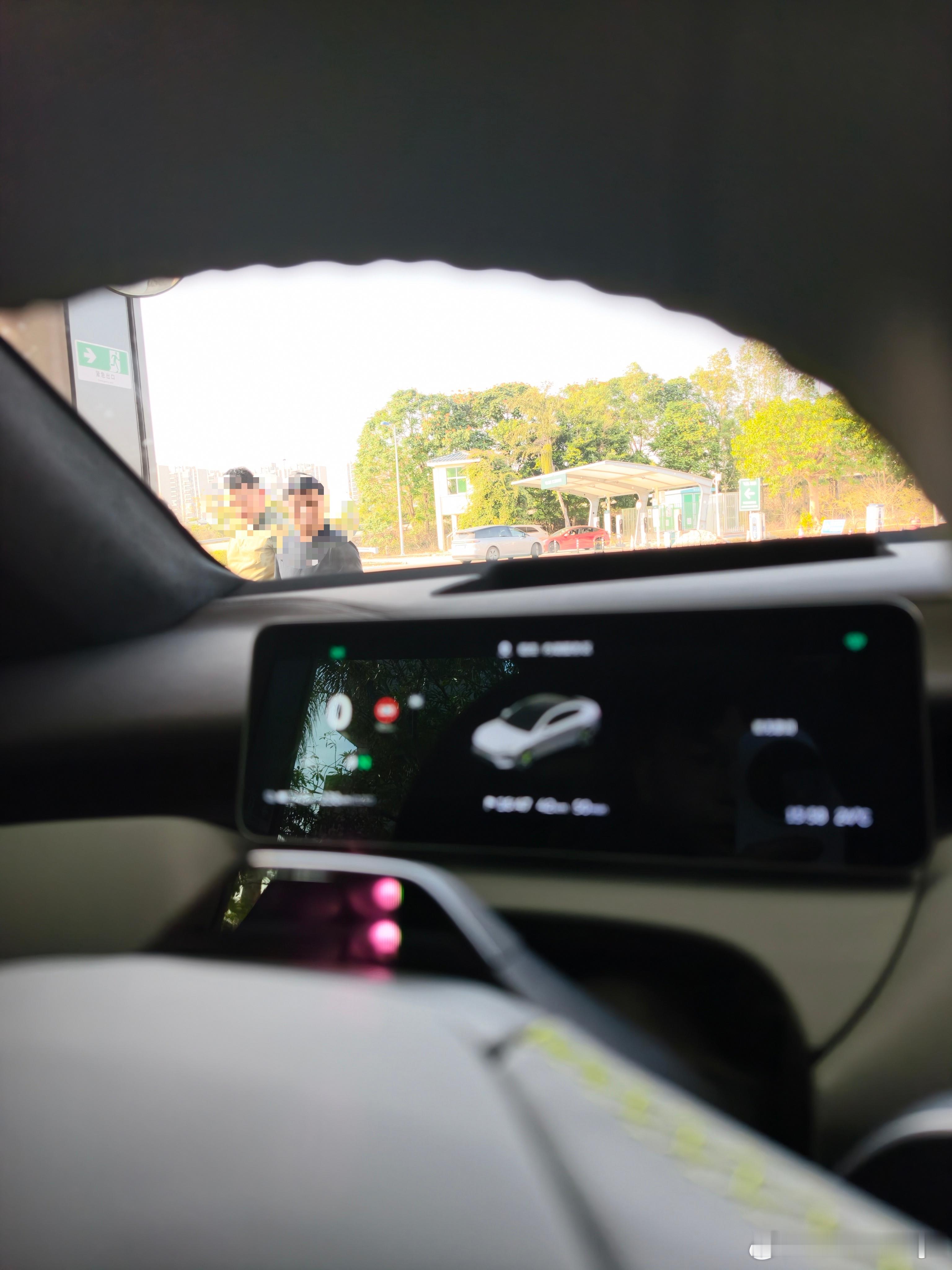 这次在服务区换电站换电无意外的又遇到「有人围观」,而且还换到了一块满电 100% 电量的电池。