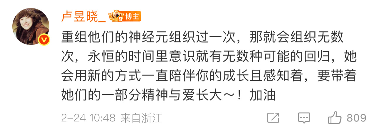 卢昱晓回复外婆去世的粉丝