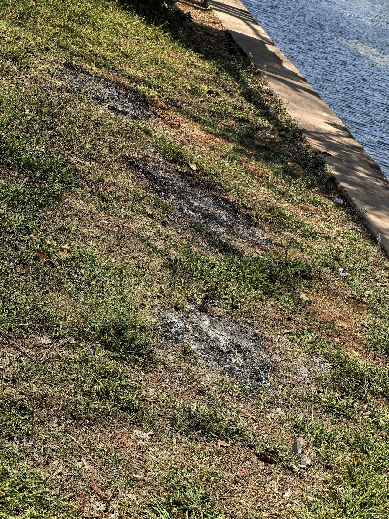 在船房河边,三百米左右长的一段,这边的草坪好多都被烧成这样的。爱护花草树木,绿水青山就是金山银山,是要靠广大的人民群众,这个被烧成平地的面积加起来也有好几百平米,而且这边又不下雨,也无法再长出来,地草坪变硬地面,都开裂了,可以在空地上专门设一个地方给这些人们烧,好可惜,小草也有生命,保护环境,你不说种树植草,但是请不要做不道德的事!
