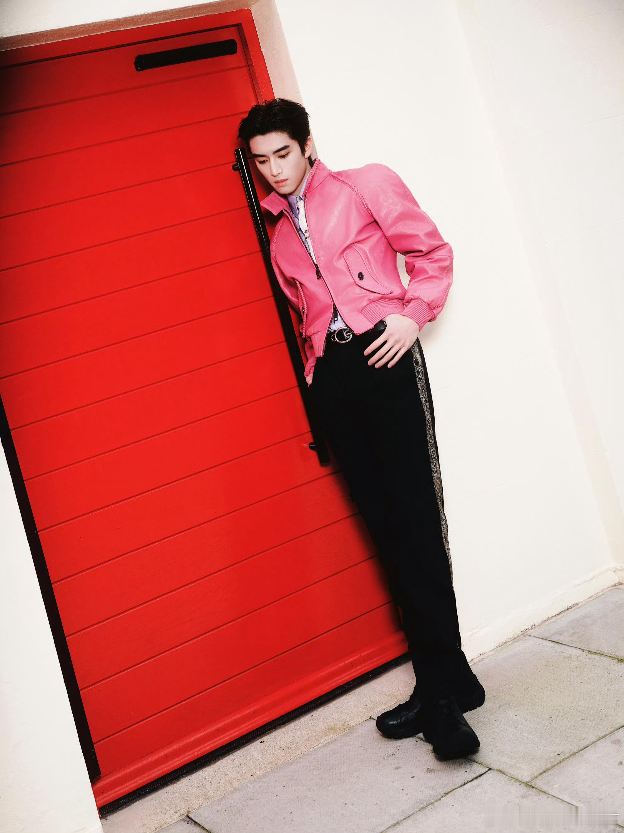 张康乐粉皮衣造型张康乐此次身穿Burberry 2026夏季系列闭秀款玫粉色短款皮衣,搭配黑色刺绣长裤与背头发型,高饱和度的亮粉色与利落廓形形成鲜明对比,兼具街头感与高级时装的张力。该造型被时尚媒体评价为"不打安全牌"的大胆尝试。