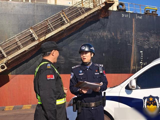 “过年好啊!货物快装完了吗?有困难随时联系我们……”上午9时,黄志翼和同事登上一艘准备发往澳大利亚的铁矿船,为工作人员送上新年祝福,并对船舶进行细致排查。