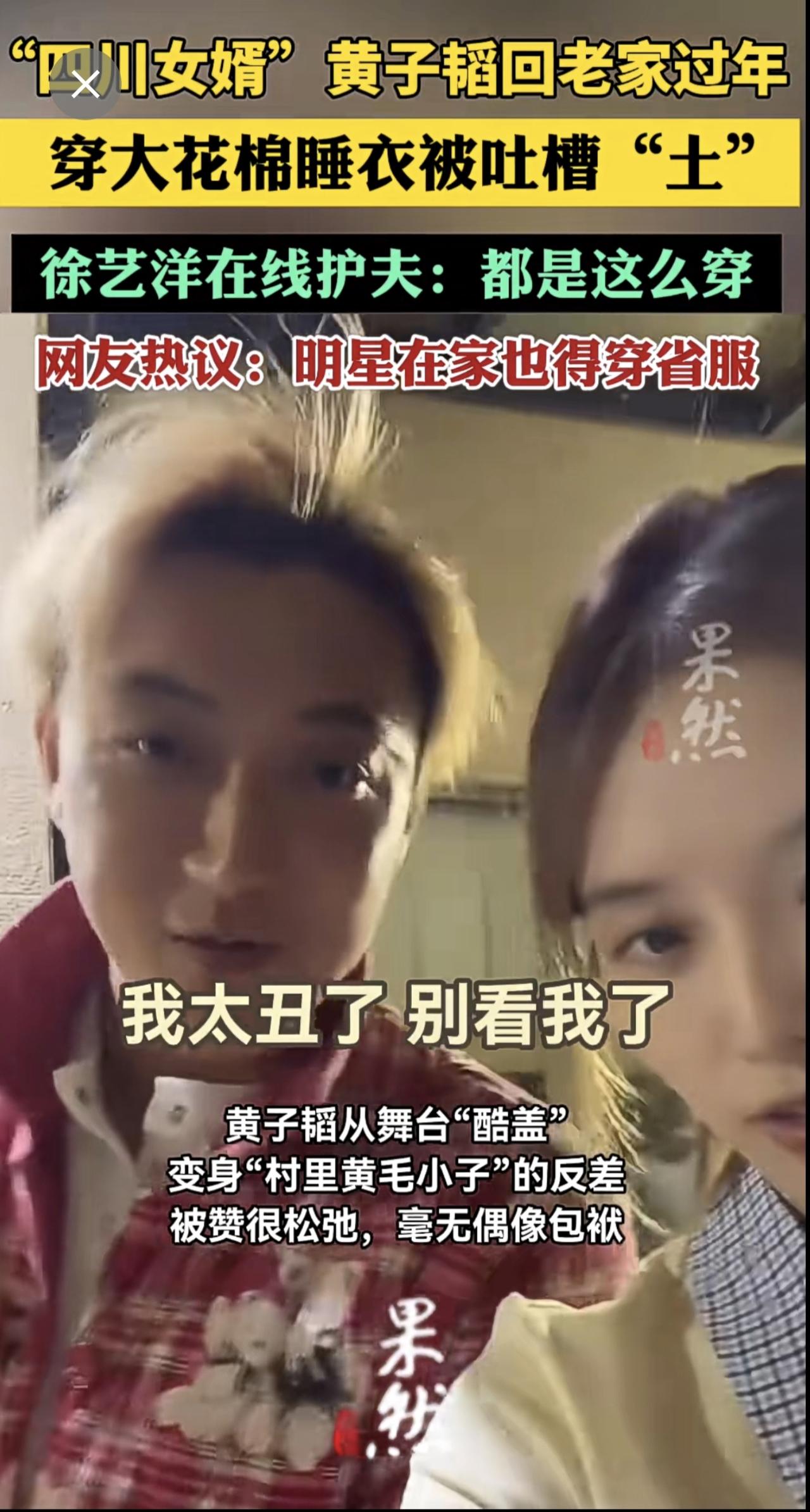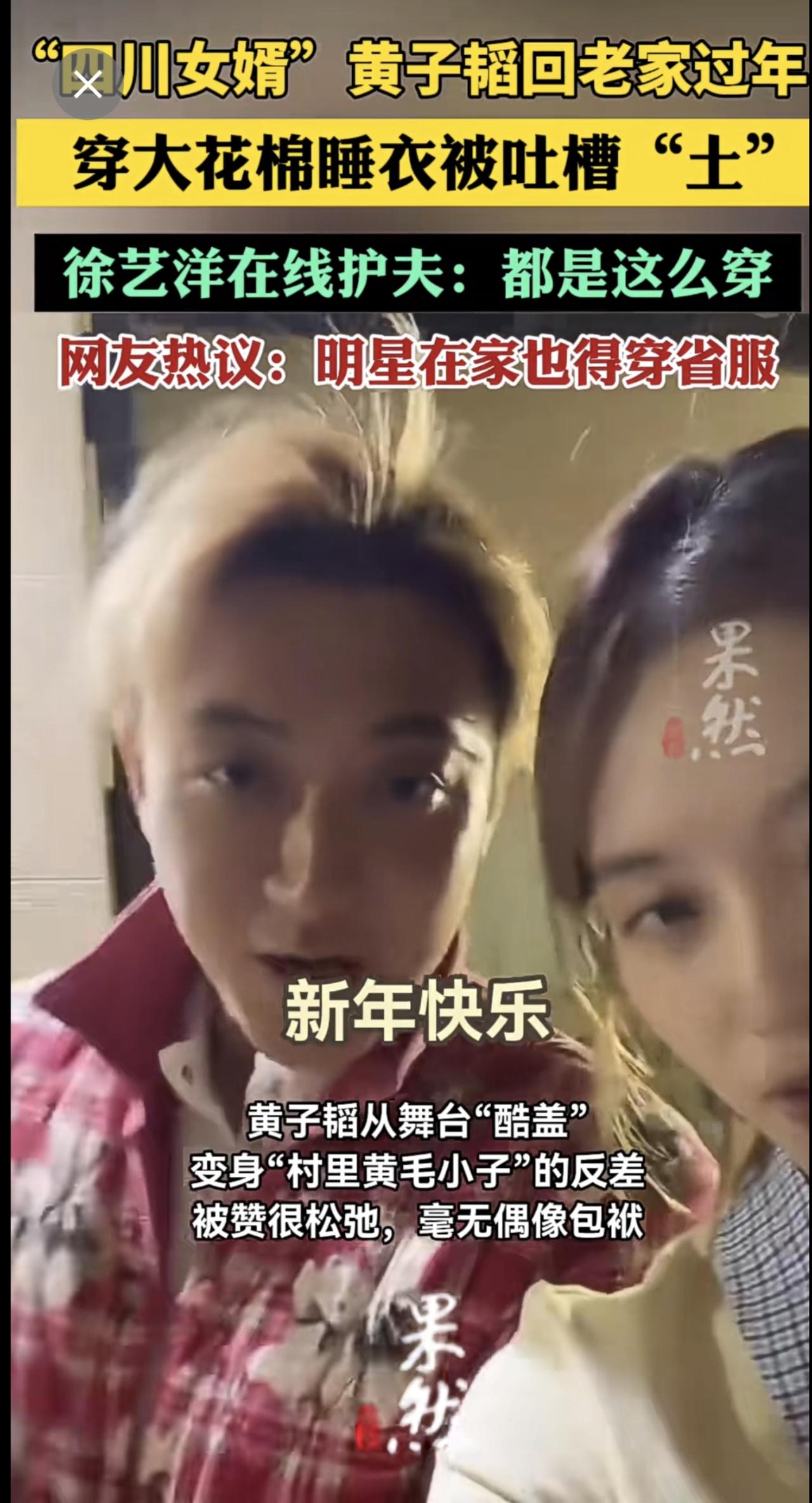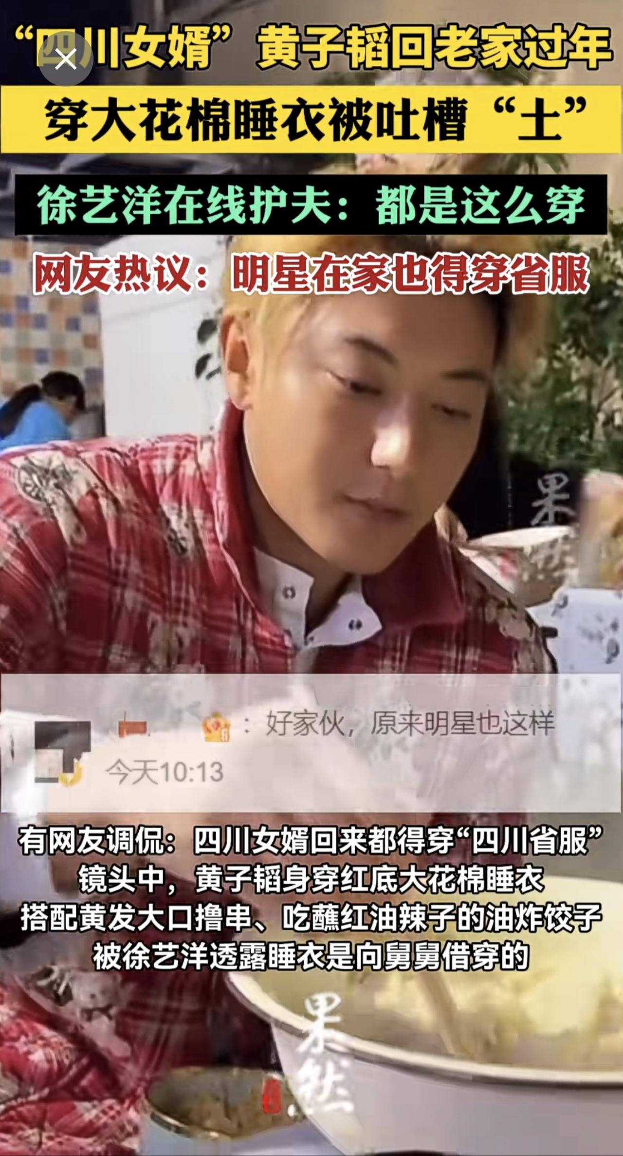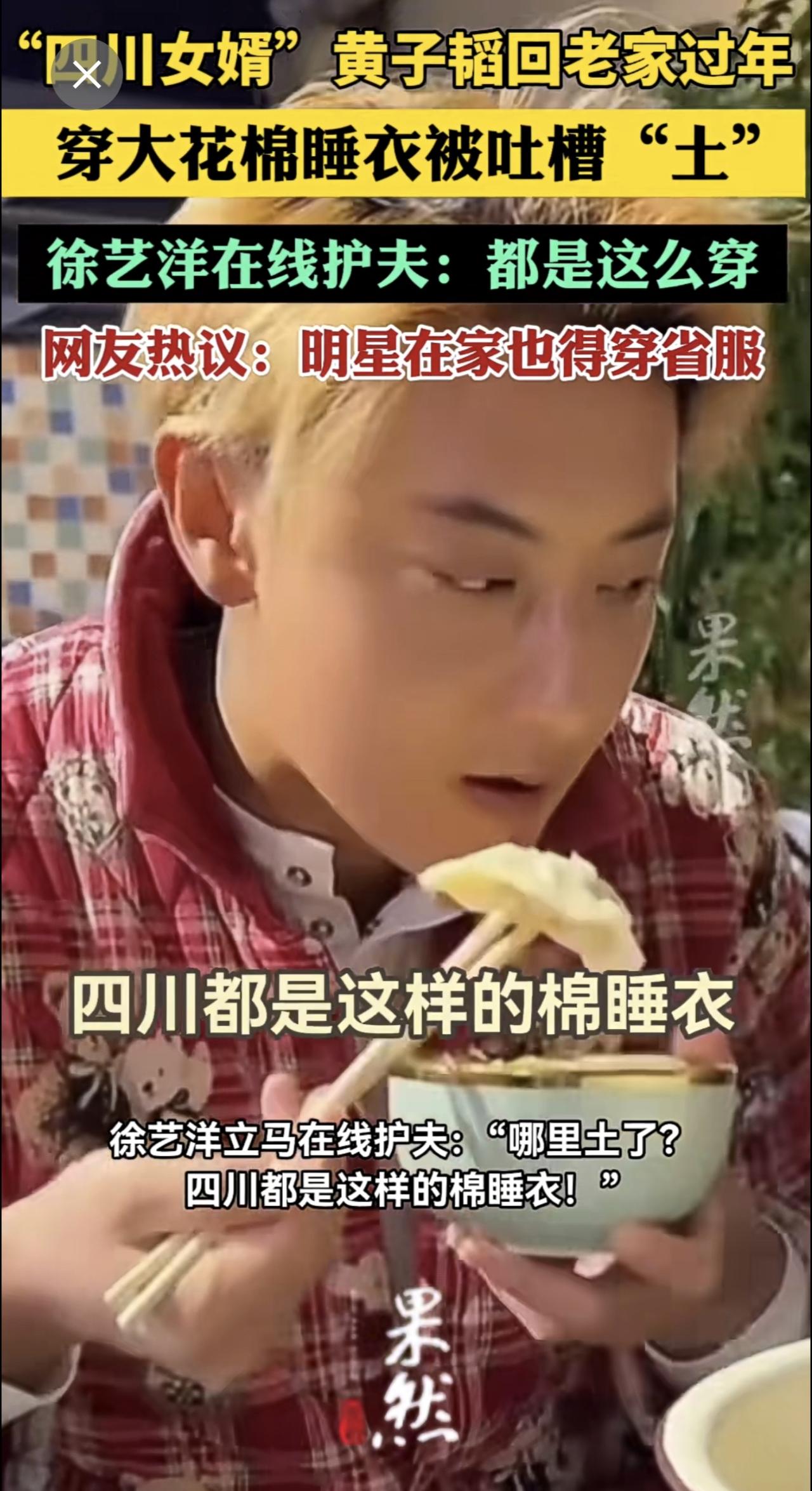 “四川女婿”黄子韬回老家过年,穿大花棉睡衣被吐槽“土” .