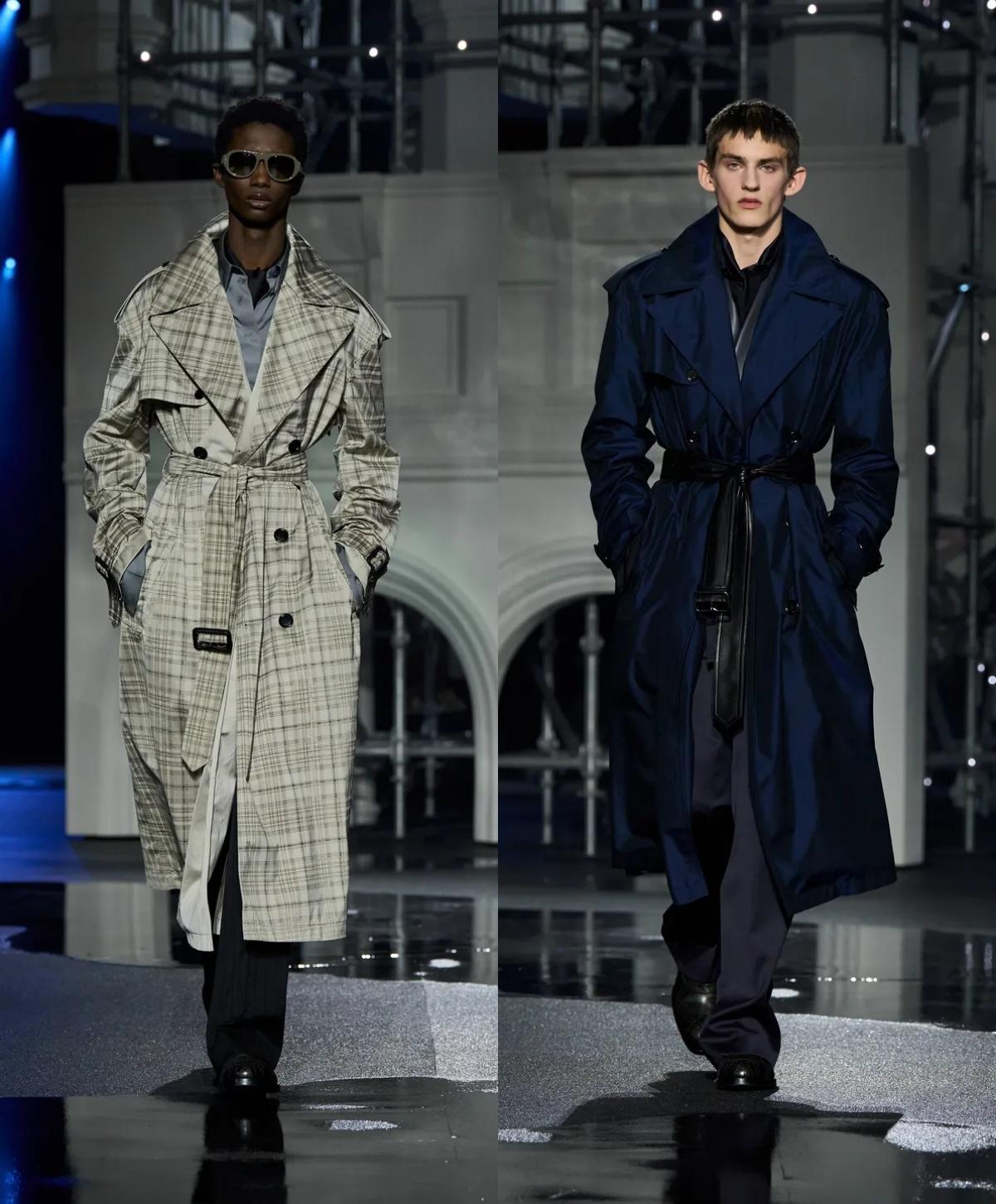 男装部分:打破功能与仪式的界限,将功能性单品(飞行夹克、连帽衫)晚装化;色彩纯粹饱和;强调“穿着方式”的解构。这种设计语言暗示了现代男性生活方式的流动性——从工作到社交,无需换装,只需切换心境。