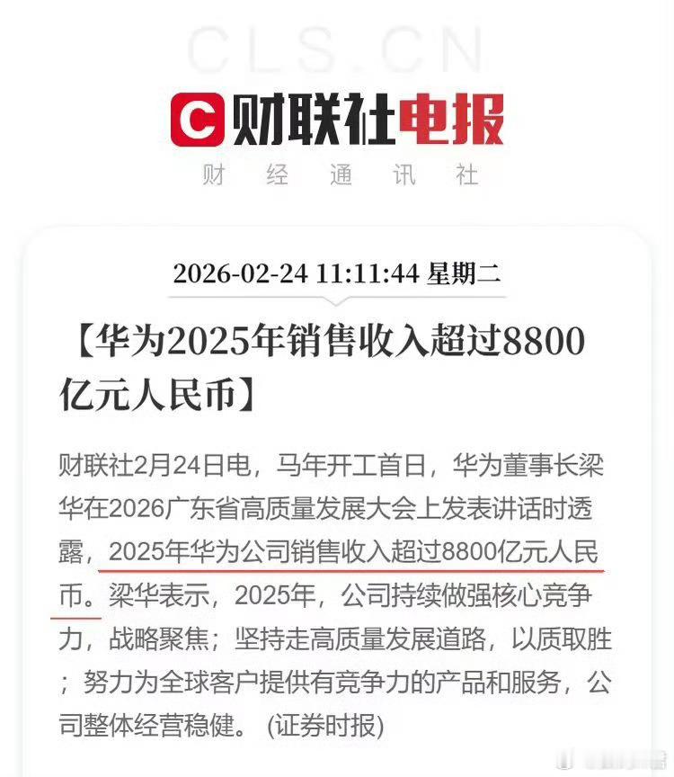 炸裂!华为2025年销售收入超过8800亿!重磅!华为2025年销售收入超过
