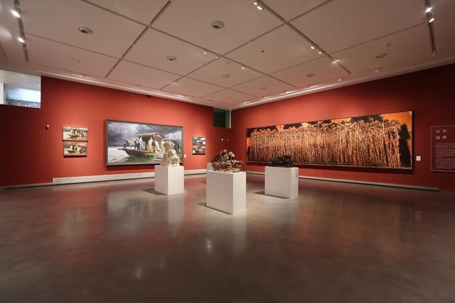 二楼方厅为百年追梦、雕塑东方、经纬四方、视传形象板块,呈现学校在国家历次重大题材创作和重要文化建设任务中主动担当作为的成果,体现了在文明演进与全球对话的宏大框架内“为民族铸魂、为时代造像”的国美贡献。二楼圆厅包含本土建筑学、文创智造、东方时尚、创新链接、艺教日新、美丽中国等实践,综合呈现学校发挥设计学科集群优势,以“设计的力量”在服务国家战略、深化艺科融合、推动产业创新、助力城乡营造等方面的探索实践与创新成果。