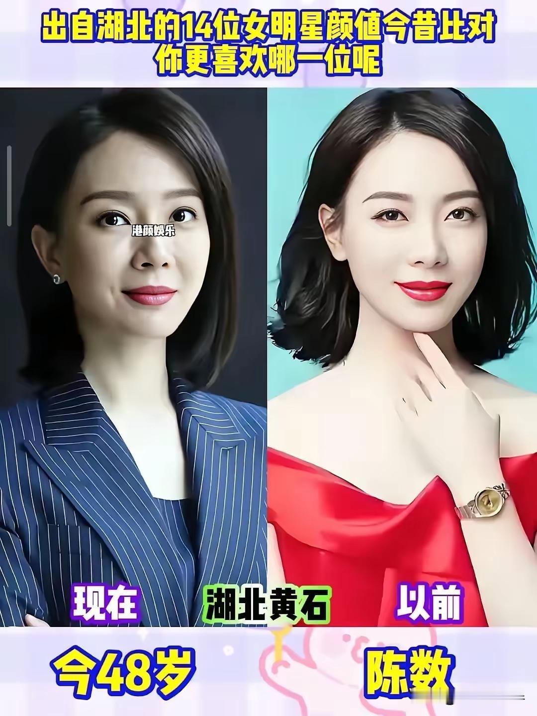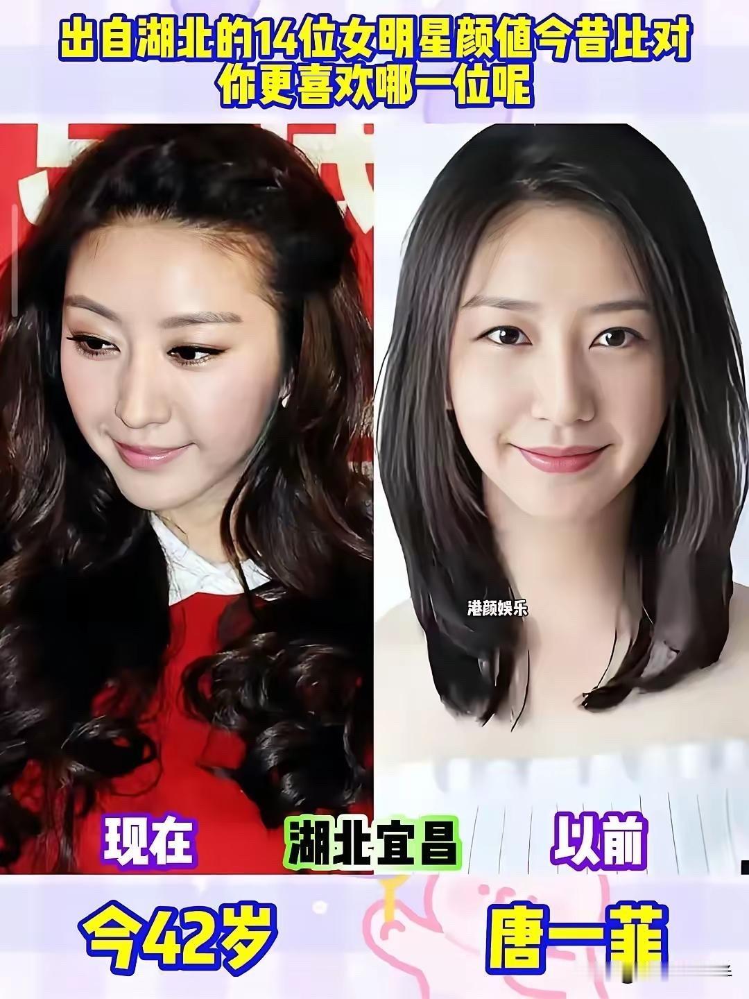 湖北籍女明星今昔对比,刘亦菲还是那个神仙姐姐,曾黎越老越有味道 曾黎是湖北荆州人,49岁了还是那么漂亮。她是中戏96级的校花,跟章子怡、袁泉、秦海璐是同班同学。那时候她在班里最漂亮,好多男生追她。 曾黎演过《男才女貌》里的颜如玉,《新聊斋志异》里的梅三娘,《大唐荣耀》里的杨贵妃,《星汉灿烂》里的萧元漪。她长得漂亮,有种古典美,演古装特别好看。 看曾黎年轻时候的照片,那叫一个水灵,大眼睛,高鼻梁,皮肤白净,真是美人坯子。 徐帆是湖北武汉人,58岁了。她是冯小刚的老婆,也是实力派演员。 徐帆是中央戏剧学院毕业,演过太多经典角色了。《大撒把》里的林周云,《甲方乙方》里的周北雁,《唐山大地震》里的李元妮,《一九四二》里的花枝。她演技好,拿过很多奖,是公认的实力派。
