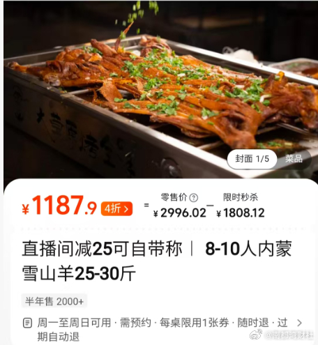 #涉事餐厅千元烤全羊套餐仍在售#【重庆餐厅#36斤活羊烤完剩6.9斤原因曝光#!