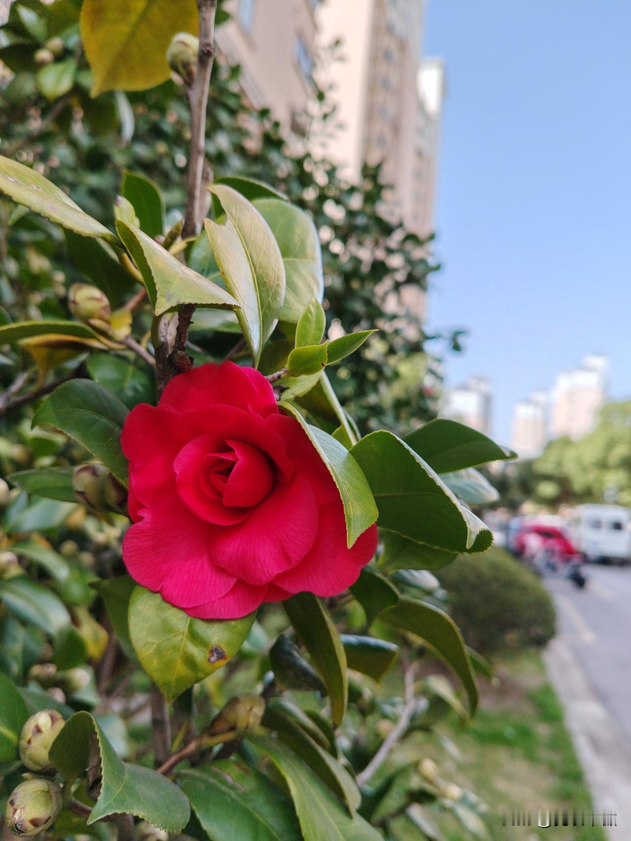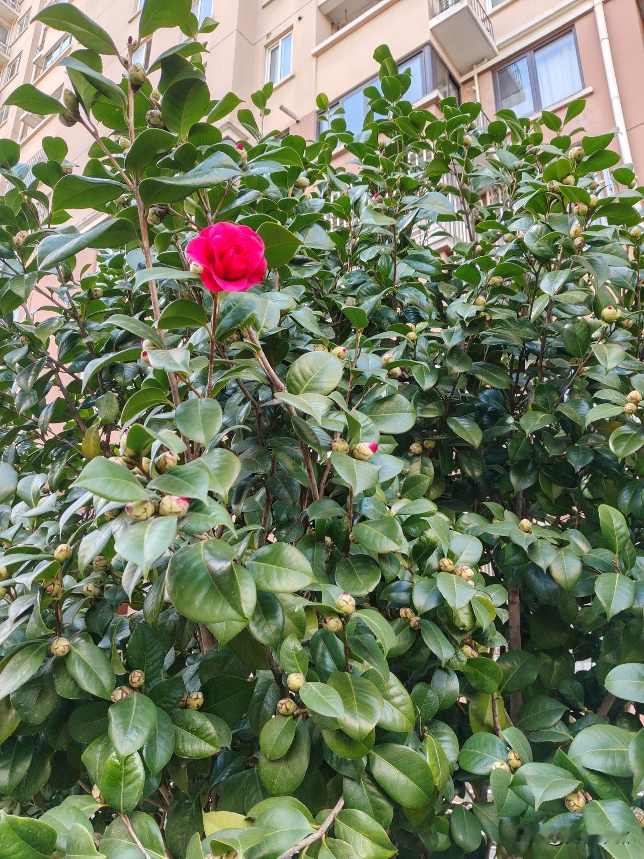 你相册里最近一次的植物的照片前天看见小区门口的三颗山茶树,每一颗树上开了一朵花,其余的花苞仍然静默着。