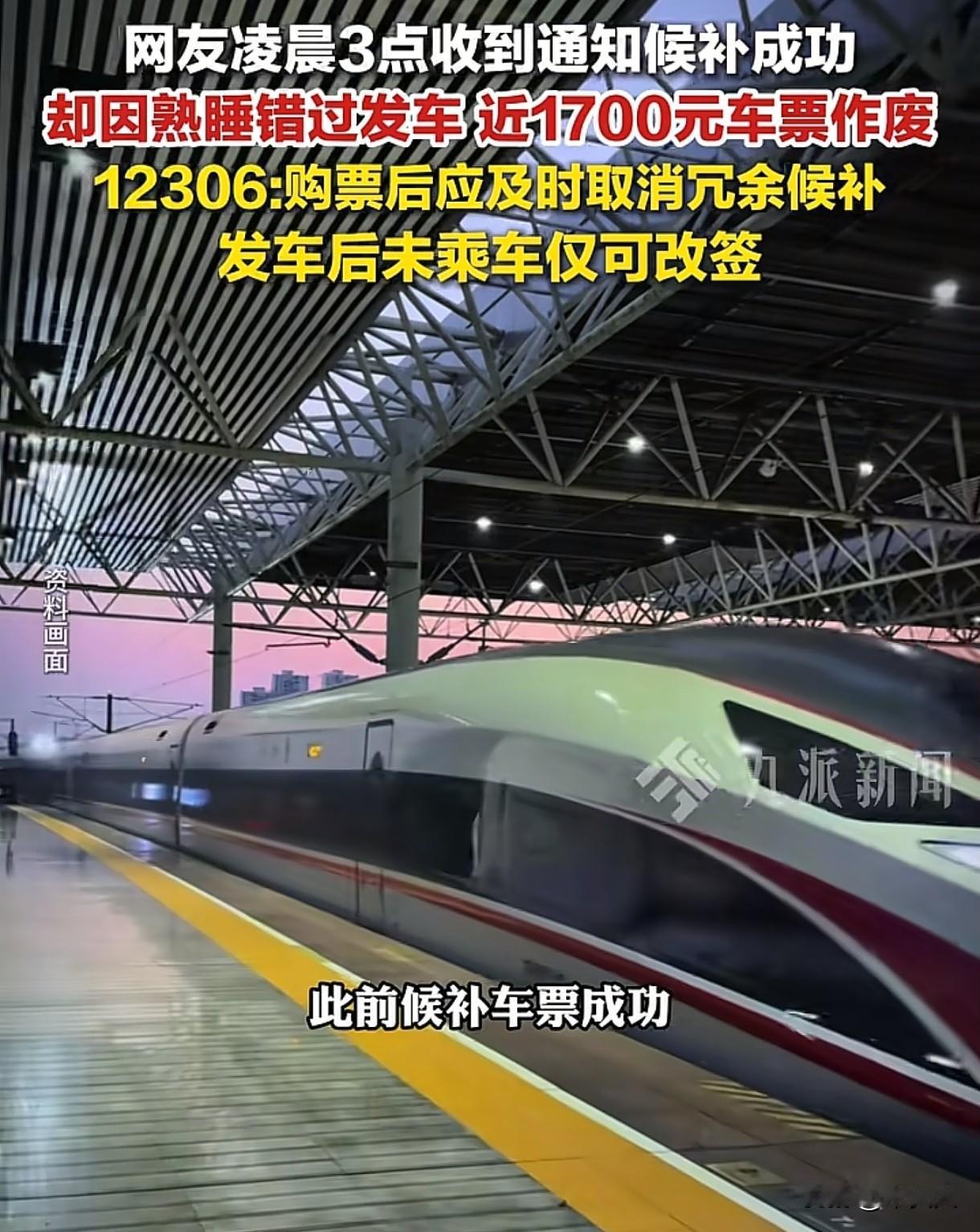 女子购买厦门到宜兴的返程车票,因无票,她提交多笔候补订单,后通过多买几站的方式成功购票,但是候补订单并未取消。凌晨3点,系统突然兑现候补订单,给女子出了票,并扣掉女子1700元车费。等女子醒来,已经错过了发车时间,她联系平台退费,可客服却告诉她:车票仅支持改签,而且需要收取40%的手续费,同时还可能产生差价。女子接受不了:系统凌晨3点才发通知,且距离发车仅5个小时,这些损失不能由自己全部承担。可网友们却给出了不同看法。 春运返程,抢票成了众多旅客的心头大事。 一名女子分享了自己购票的经历,因一个疏忽,她可能面临1700元的车票损失。 女子在购买厦门至宜兴的返程票时,在抢票无果的情况下,提交了多趟车次的候补订单。 临近出发,还是没有买到合适的票,无奈之下,只能选择加价“多买几站”,这才成功购得一张车票。 本以为这下能安心踏上返程路了,可没想到,凌晨3点,系统突然兑现了此前她未取消的另一趟行程高度重叠的候补订单,并发送了通知。 当时她正在熟睡,根本没及时看到这条通知,等她醒来,列车早已发车,那张近1700元的车票,就这样面临着无法全额退款的尴尬局面。 发现漏乘后,女子心急如焚,立刻前往高铁站咨询退票事宜,可工作人员告诉她,列车已经发车,按照规定无法办理退票,并建议她联系12306客服。 客服给出的答复是,车票仅支持改签,而且需要收取40%的手续费,同时还可能产生差价。 但是此时女子已经购买其他车票出行,因此这个改签也是行不通的,她面临1700元的损失。 女子承认自己存在疏忽,此前成功购票后,候补订单会自动取消,这次没及时取消,自己负有一定责任。 但凌晨3点收到通知,距离发车仅仅只有5小时,人在熟睡中,没能及时查看信息,也是正常的,谁半夜2.3点不睡觉。 另外,两张车票行程高度重叠,系统却没有进行有效拦截,导致她白白遭受了1700元的损失,全部由她个人承担,这换做是谁,都难以接受。 对于女子的遭遇,有人说:候补购票,是可以设置截止兑现时间的,比如12点的车票,可以设置7点停买或者8点停买,在这个时间段,自己肯定要守好的。 其实乘客的责任更大一些,自己购票成功,又不取消候补订单,虽然没赶上车,但是也占用了资源,既然有规则,那就按照规则办就可以了。 也有网友分享了自己的经历,半夜突然收到候补成功的通知,结果因为各种原因没能及时乘车,只能无奈接受改签和损失手续费的结果。 那么,候补订单是否可以退票呢? 若候补订单尚未兑现成功,用户取消订单后可立即获得原路退款,且无需支付任何手续费,实现全额退款。 若候补订单已成功获取车票,退票需遵循12306常规退票规则。 出票后,如果乘客需要办理退票手续,需要在列车开车时间前办理,开车前8天(含)以上退票的,不收取退票费;票面乘车站开车时间前48小时以上的按票价5%计;24小时以上、不足48小时的按票价10%计;不足24小时的按票价20%计。 女子凌晨3点收到出票信息,次日醒来时,列车已经发车,此时已经无法办理退票,客服给出的建议:可以改签。 但是此时因女子已经购买其他车票,改签这个方案也是行不通的。 《民法典》第816条规定:旅客因自己的原因不能按照客票记载的时间乘坐的,应当在约定的期限内办理退票或者变更手续;逾期办理的,承运人可以不退票款,并不再承担运输义务。 在这个事件中,女子自身是存在疏忽的,一是她购票成功后,没有及时取消候补订单,二是没有设置好候补订单的截止兑付时间,因此其自身需要承担一定的责任。 也有网友给出建议,能否进一步优化候补机制,比如对于行程高度重叠的候补订单,系统是否可以给予更加严格的审核和拦截。 在发送候补通知时,能否采取更加多元的方式提醒乘客,确保乘客能及时收到信息。遇到特殊情况,能否更加人性化一些。 对于乘客来说,要增强规则意识,在购票后及时关注自己的订单情况,及时取消冗余的候补订单,设置好时间,防止因为行程改变而忘记取消候补,造成损失。 对于此事,大家怎么看?