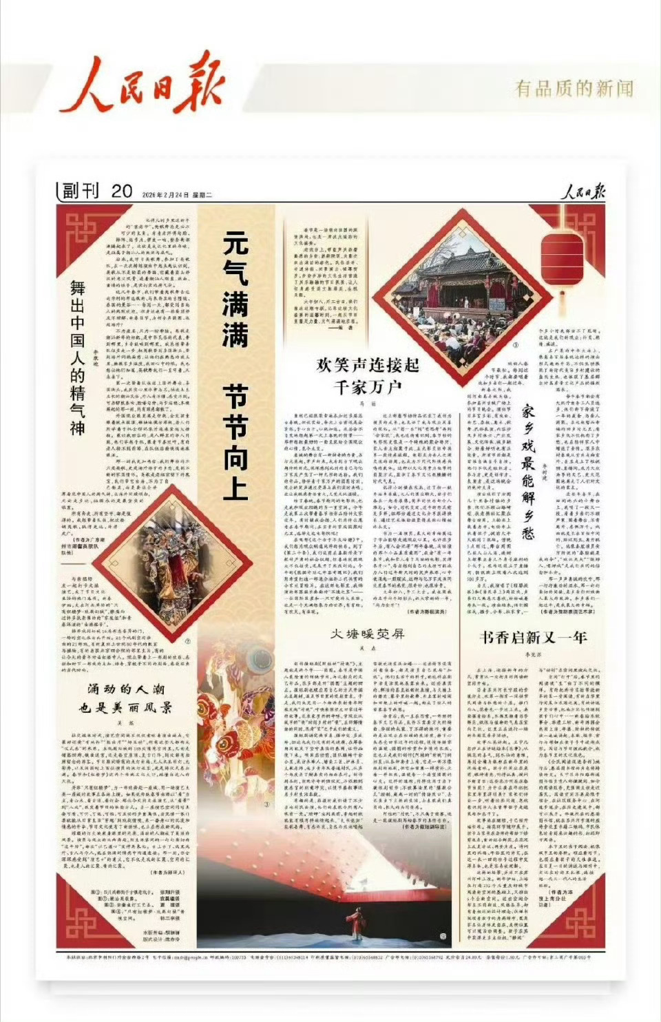 演员马丽人民日报撰文马丽在人民日报撰文《人民日报》副刊刊登马丽文章《欢笑声连接起千家万户》,她在文中分享了多次登上春晚舞台的初心,以及三部春节档电影《这个杀手不太冷静》《第二十条》《熊猫计划之部落奇遇记》的创作感悟。从春晚的紧张与期待,到影院里的情感共鸣,她始终以真诚的表演,让作品成为连接观众的纽带,用笑声点亮团圆时刻。