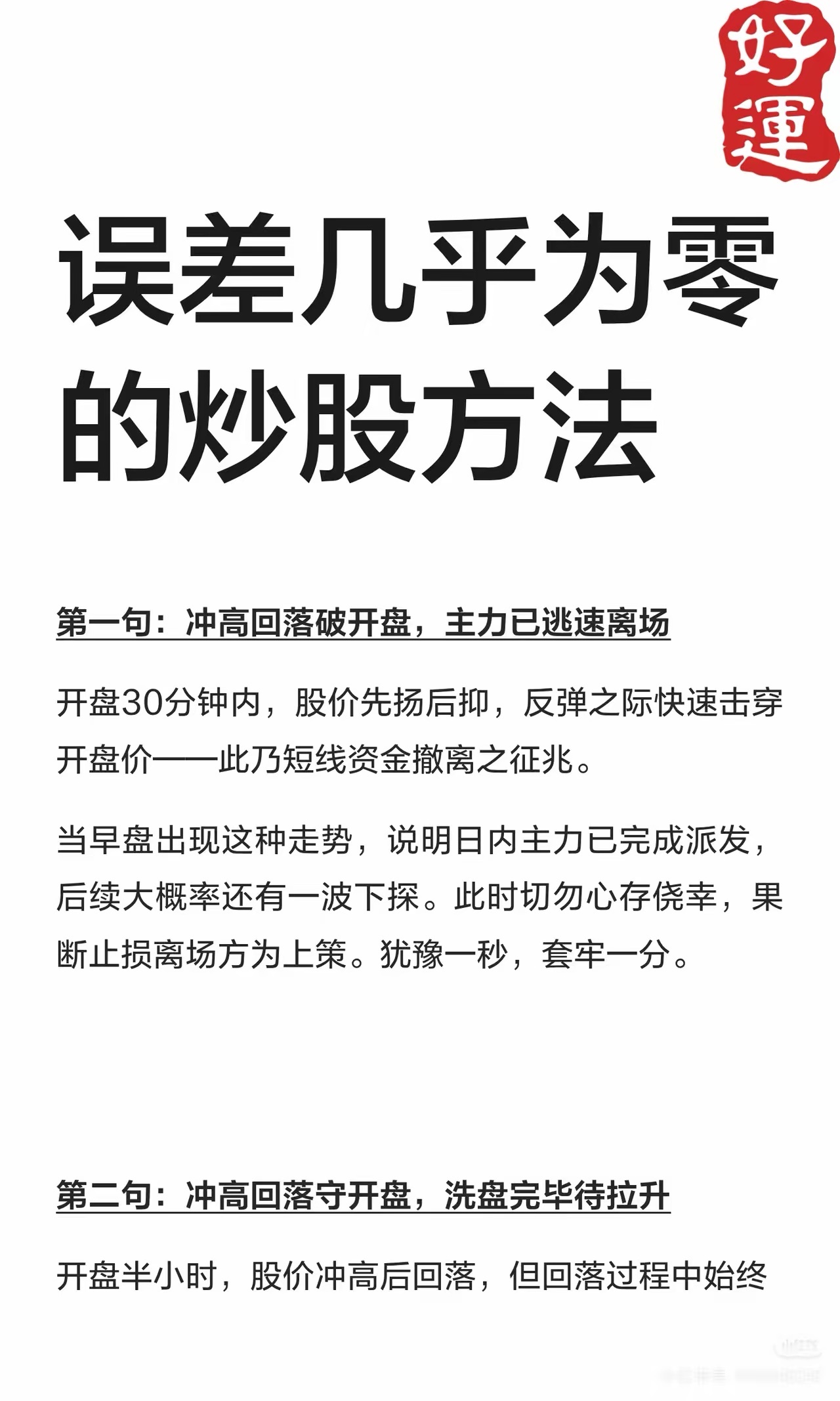 股票操作战法:经典+实用+翻倍口诀!作为小散户,学习提高才能进步!有些都