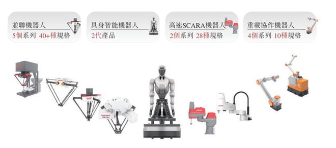 并联机器人之外,阿童木还拓展了高速SCARA机器人、重载协作机器人两大品类,并于2025年完成具身智能机器人产品线布局。